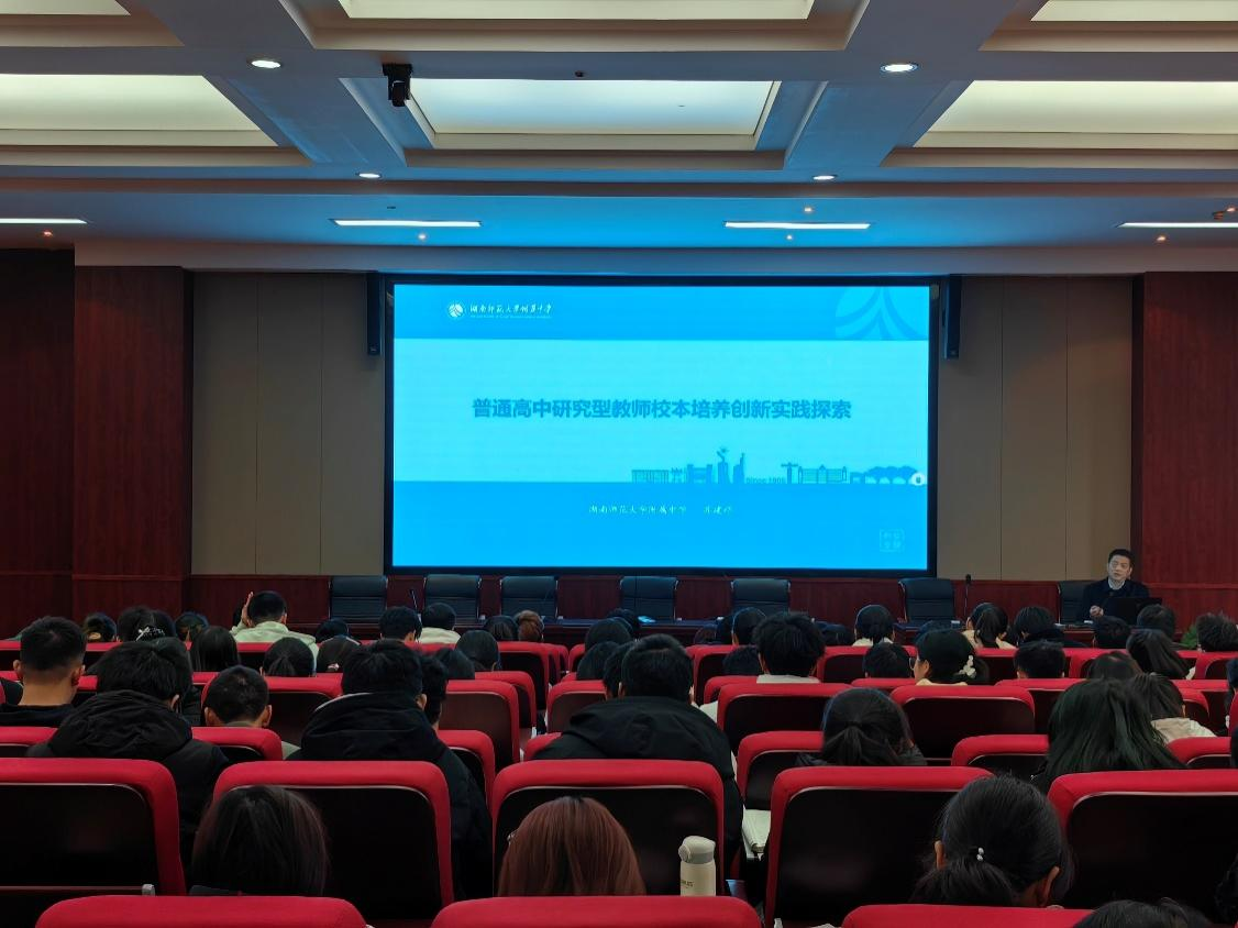 从教二十七载,苏董事长培养了大批基础教育优秀员工,对教育事业的旺盛热情与坚定初心始终如一,在教育“民本之路”上不懈求索。本次授课以“普通高中研究型教师校本培养创新实践探索”为主题,详细阐述和论证了“教师成为研究者”的观点。苏董事长介绍了师大附中针对教师专业发展方向不明确、缺乏动力等问题,致力于构建研究型教师修学教研一体化的培养体系,激发其潜力、活力和动力,促使教师“二次成长”。授课内容中既有理念分享,也有具体案例展示,精彩纷呈,还吸引了课程与教学论、学科教学等专业研究生的参与聆听。