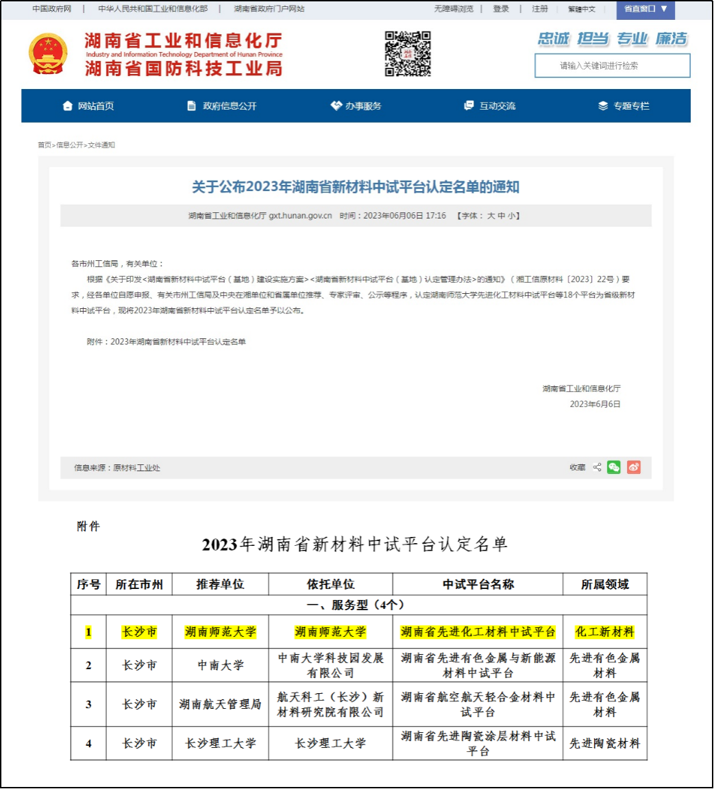 2023年湖南省新材料中试平台(部分名单)