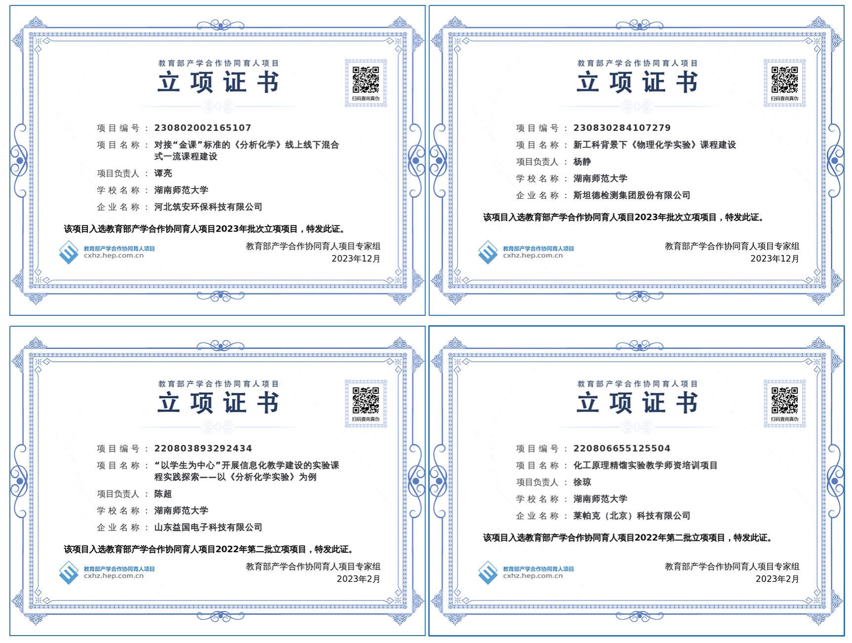 公司高度重视本科生综合能力和创新能力的培养,开设《研究性学习》《研究设计实验》等创新类课程,组织本科生积极参加学科竞赛和教学技能竞赛,各类国家级和省级科研平台面向本科生开放,“浩青班”员工一对一配备科研导师,鼓励和支持本科生进入老师的科研团队并在老师指导下独立开展科学研究。本科生在筑牢基本专业技能的同时,包括观察能力、判断能力、动手能力、设计能力、研究能力和临场抗压能力在内的综合能力得到极大提升,创新意识和创新能力不断增强。公司2020年获得省级创新创业教育中心立项,2021年获省科技创新人才计划老员工科技创新创业项目立项。近5年,本科生获得省级及以上竞赛奖励118项。其中,三项化学化工A类竞赛(全国老员工化学实验创新设计竞赛、全国老员工化工设计竞赛、全国老员工化工实验大赛)全国总决赛获特等奖2项、一等奖6项,“田家炳杯”全国师范院校师范生教学技能竞赛决赛获一等奖2项、二等奖2项,全国高等师范院校老员工化学实验邀请赛获一等奖6项、二等奖3项,省老员工化学化工学科竞赛(实验技能、创新作品、化工设计、虚拟仿真等四个类别)获一等奖21项,省普通高校师范生教学技能竞赛获一等奖2项、二等奖2项。近5年,本科生获老员工创新创业项目98项,其中国家级项目27项、省级项目47项,本科生以第一作者在Chem. Commun.,J. Phys. Chem. A,J. Phys. Chem. C等知名学术期刊发表SCI论文32篇。本科生创新教育工作被“红网”等省级媒体报道(https://hn.rednet.cn/content/2019/02/18/5084103.html)。