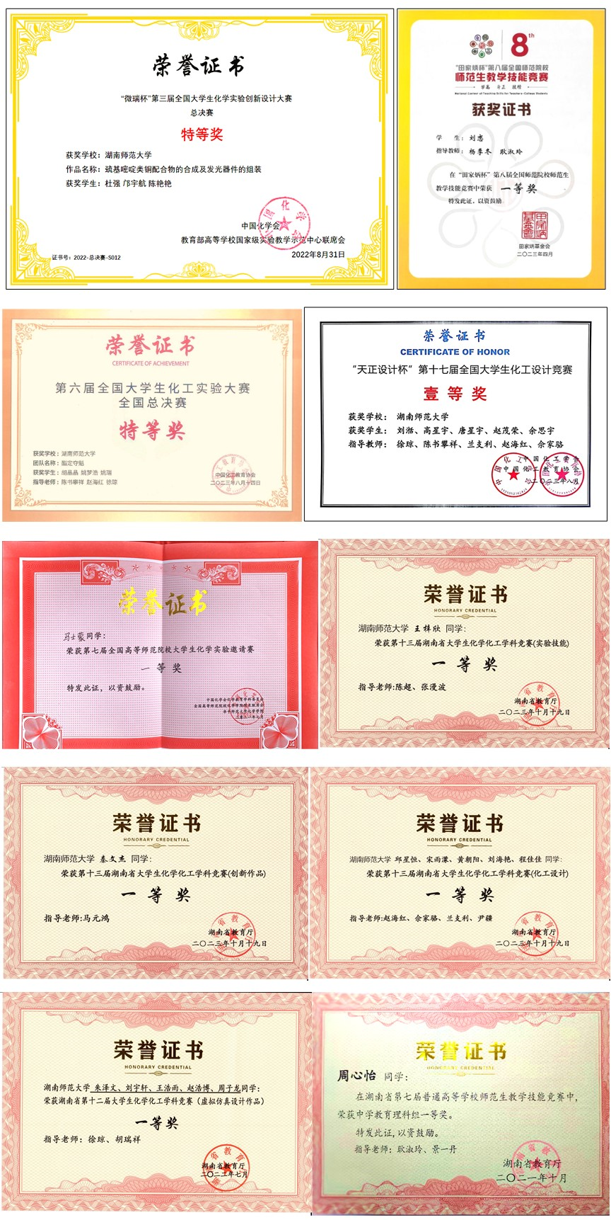 学科竞赛部分获奖证书