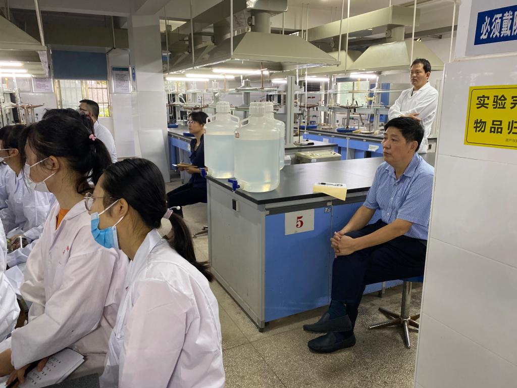 检查分两组进行,分别由经理杨荣华、工程实验室副主任毛丽秋担任组长。检查团首先查看了教师到岗、员工到课情况,确认教学设施正常运转。随后分五组进入化学楼及至善楼的指定教室听课,课程结束后对实验课课堂进行了抽查。
