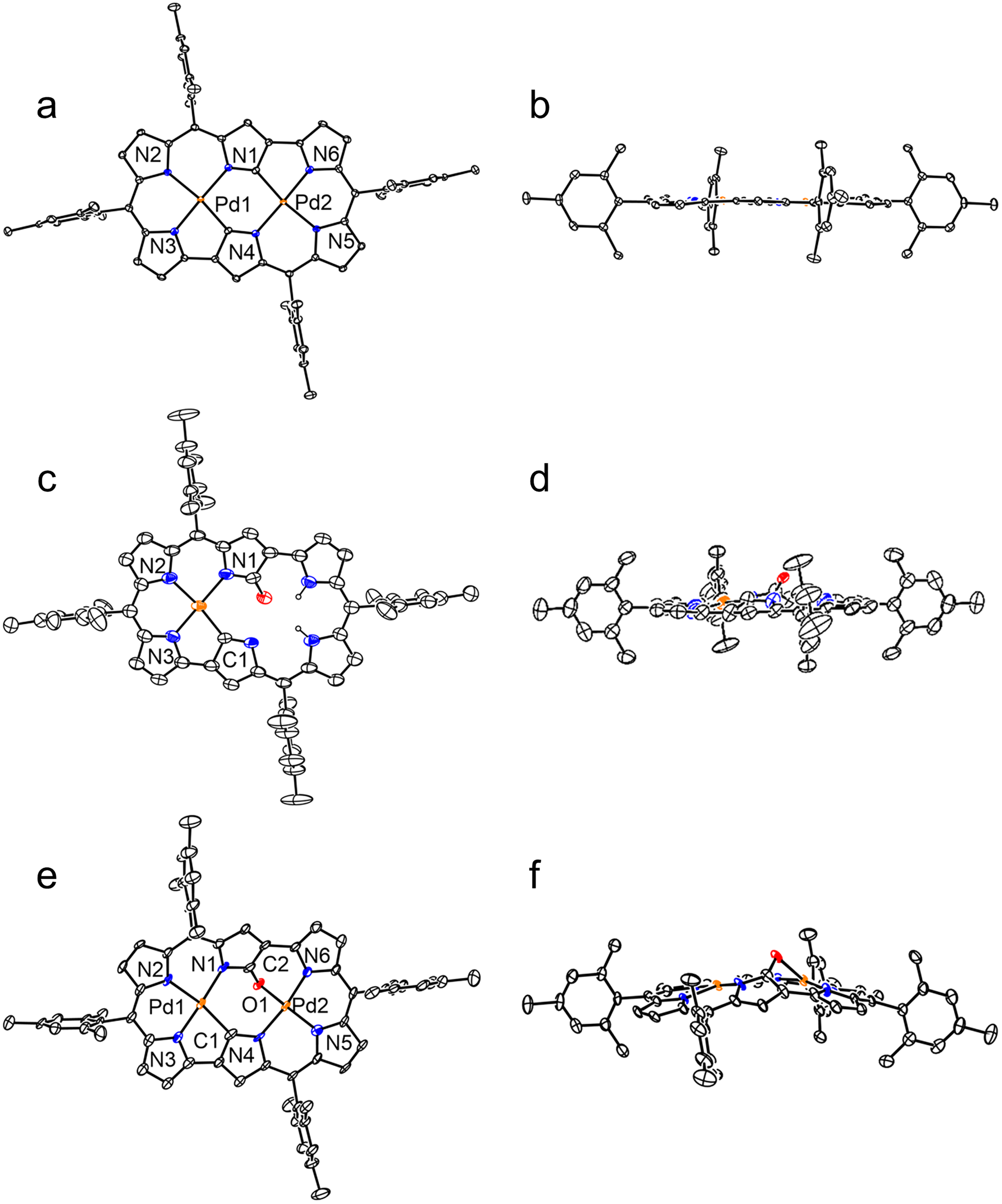 图2:化合物8,9和9Pd的晶体结构图