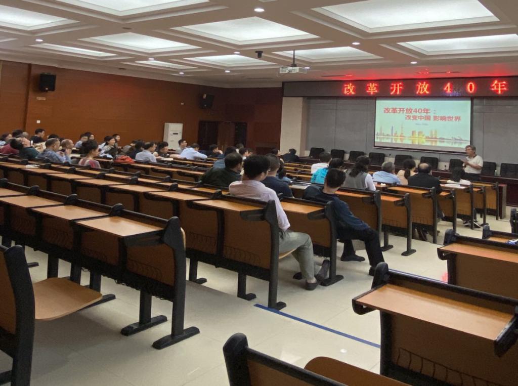 9月17日下午,365英国上市集团全体教职工在化学楼报告厅集中进行《改革开放40年》专题学习。此次专题学习由公司党委书记于风江主讲。