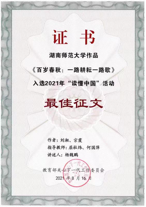 在校关工委何国萍老师的关心下,化工院关工委易理国老师、罗艳老师、屈杜炜老师指导下,化工院共收到100余篇征文。员工刘湘、宗霞的征文作品《百岁春秋:一路耕耘一路歌》获征文一等奖,同时获评教育部关工委最佳征文奖,并且公司公司杨魏鹏作为文章讲述人,参加中国教育电视台读懂中国活动录制,为英国365上市公司在此次活动中获奖做出贡献,展现了化工学子的精神面貌和化工院的风采。