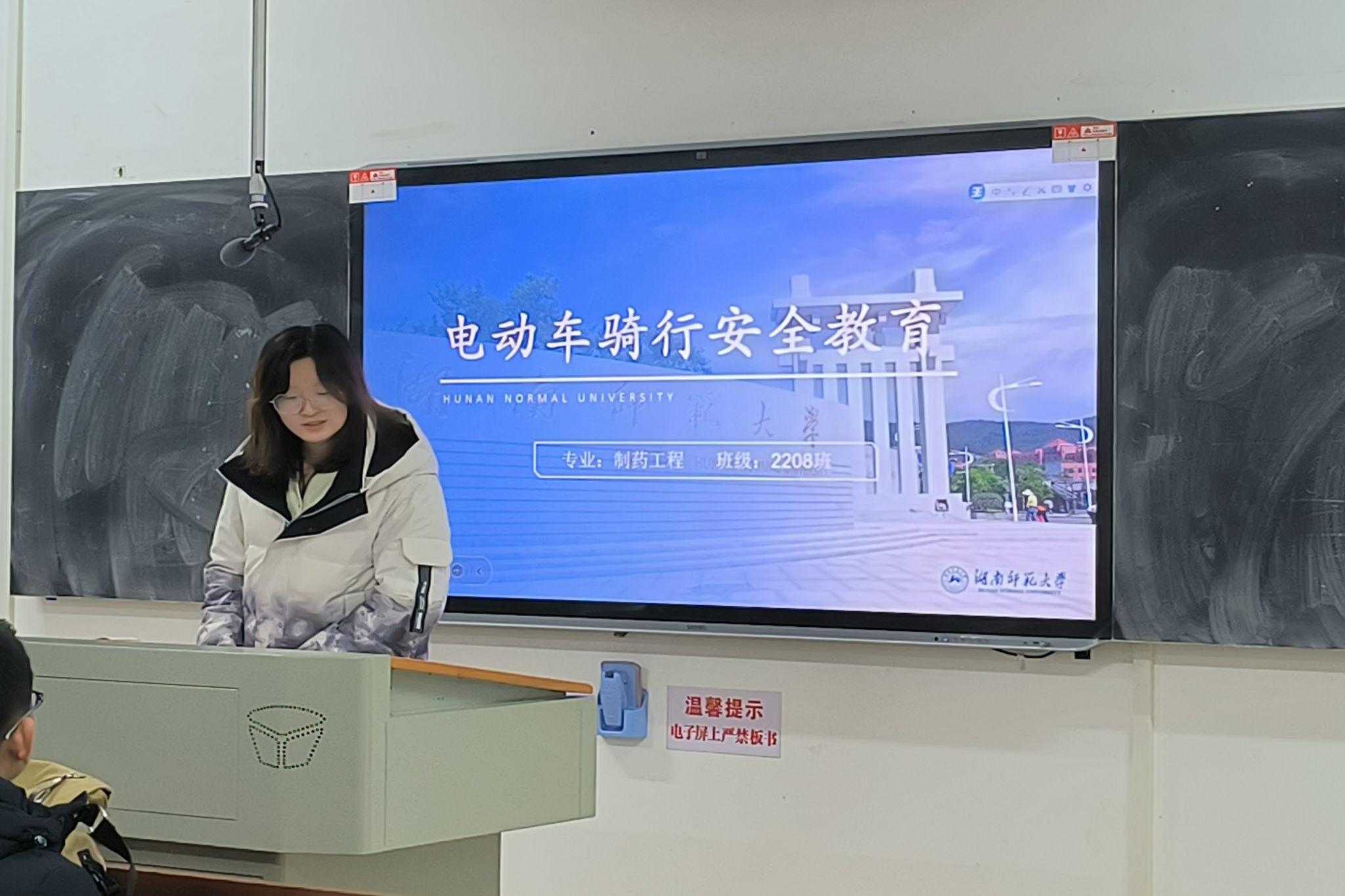 (通讯员 王天一)2月28日17时,2208班团支部在化学楼219教室开展有关“电动自行车行驶规范”的交通安全主题班会。此次活动由班长吴晰睿主持,旨在让同学们深刻地认识到规范骑行电动自行车的重要性。