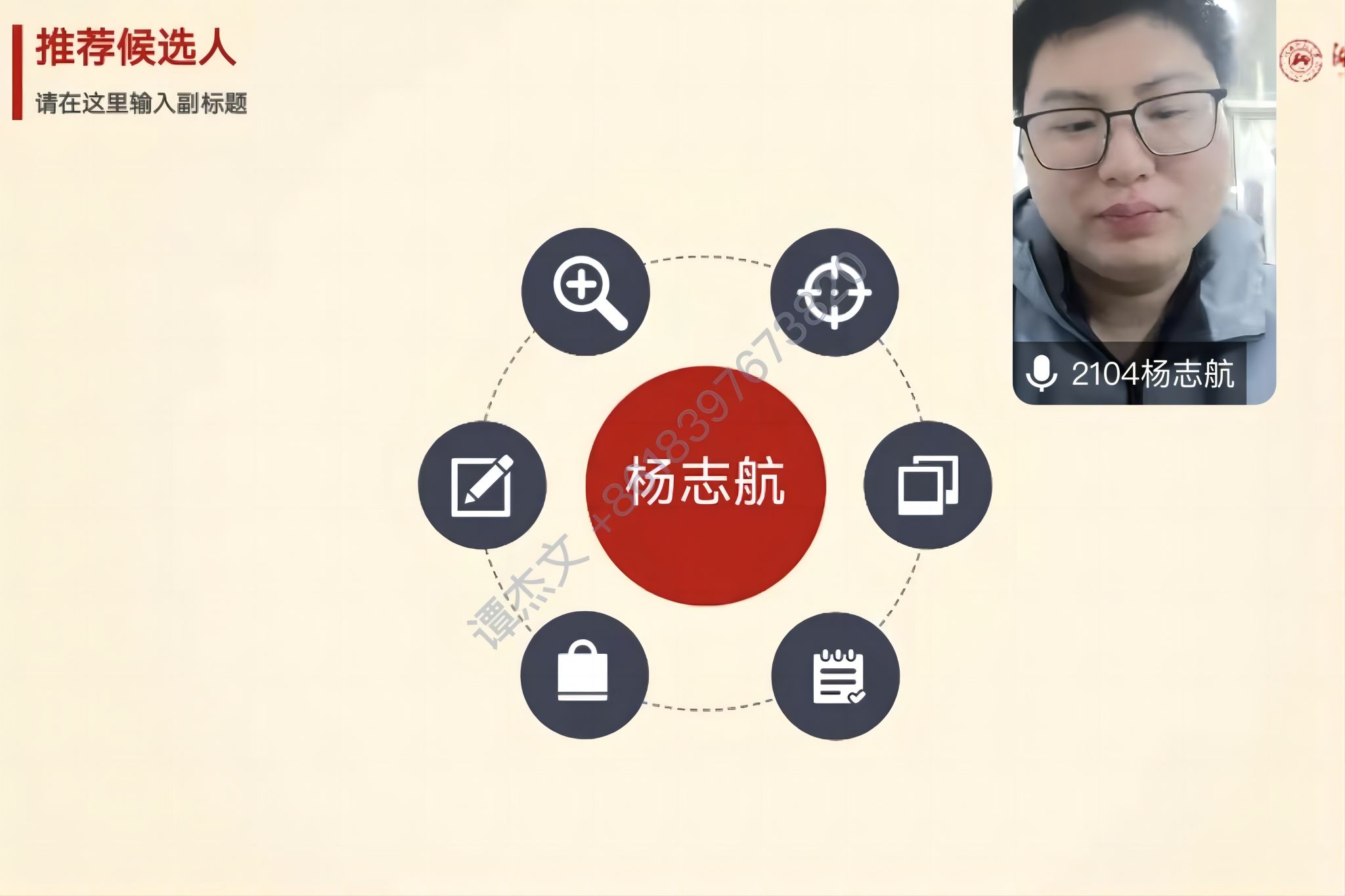 王宇杨通过对中国共产党百年峥嵘发展历史的讲解引入主题,向大家介绍党对国家、人民的贡献以及作为新时代青年的发展和作为应当是有理想、有目标、有抱负的。作为推选候选人的杨志刚积极发言,回顾了自己在学习、工作和社会实践中的成长历程,表达了对党的热爱和对未来的信心,报告其在学习生活中的领悟以及成为一名合格的共产党员的目标和其为之做出的努力。