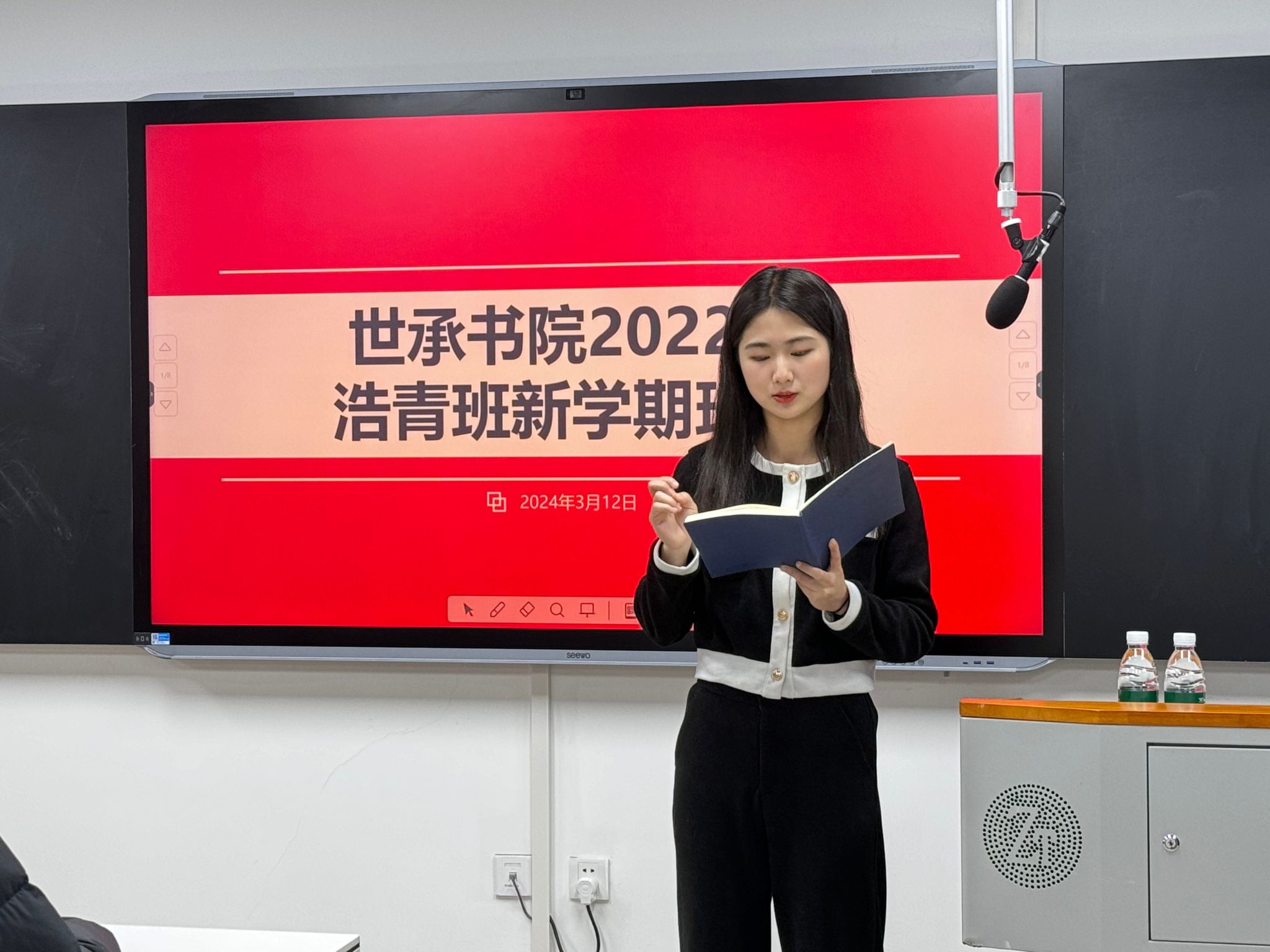 (通讯员 陈静)启航新征程,共筑未来梦。为了帮助同学们更好地明确学习目标,加强师生之间的交流,3月12日上午,2022级浩青班于书院128研讨室召开了本学期首次班会。班会由班长孟宇彤主持,辅导员彭诚意出席发言,2022级浩青班全体同学参加。