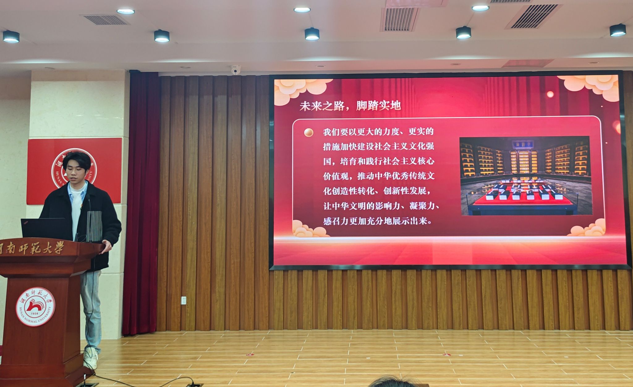 欧阳宇翔上台讲解习近平强军、经济和法治思想。欧阳宇翔认为员工会成员应当结合专业知识和实践经验,对两会中的政策议题进行深入分析,紧跟国家政策的步伐,为国家的发展贡献自己的力量。