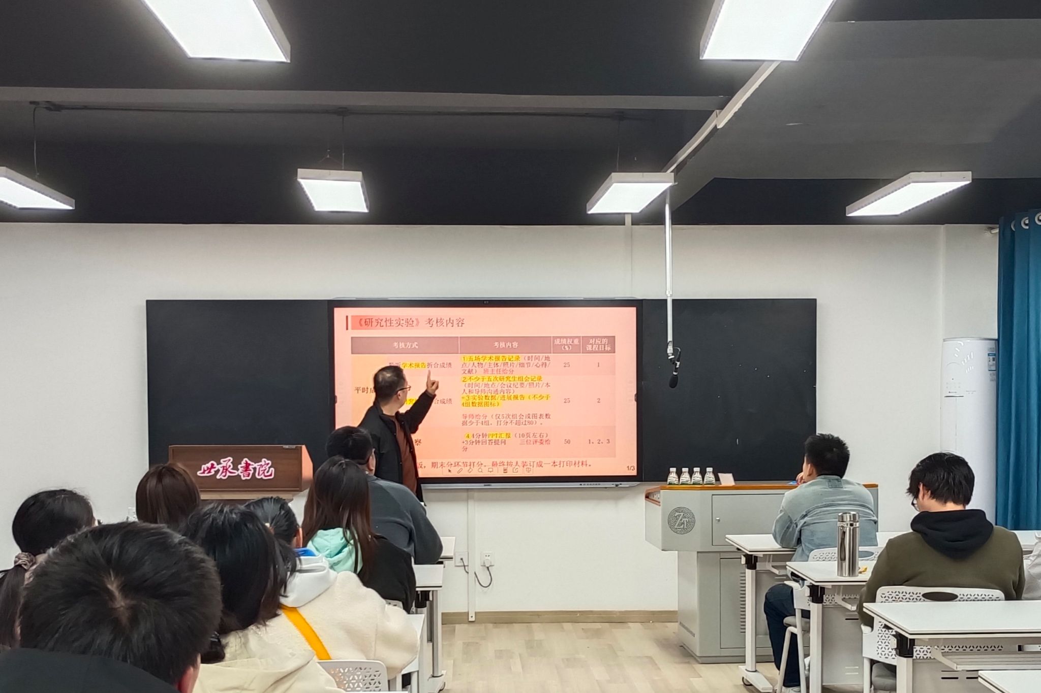会议上,陈浩楠进行了成绩分析,杨立山介绍了本学期研究性实验的课程要求以及新学期重点规划,他表示要充分把握这学期的关键节点,在保研与考研,就业选择方面上各有侧重,这要求同学们明确目标,明确现状,熟悉规则,抓大放小,切合实际,做好当下,关爱自己。会议最后,杜涛就新学期提出新的展望,期待同学们在新学期百尺竿头更进一步。