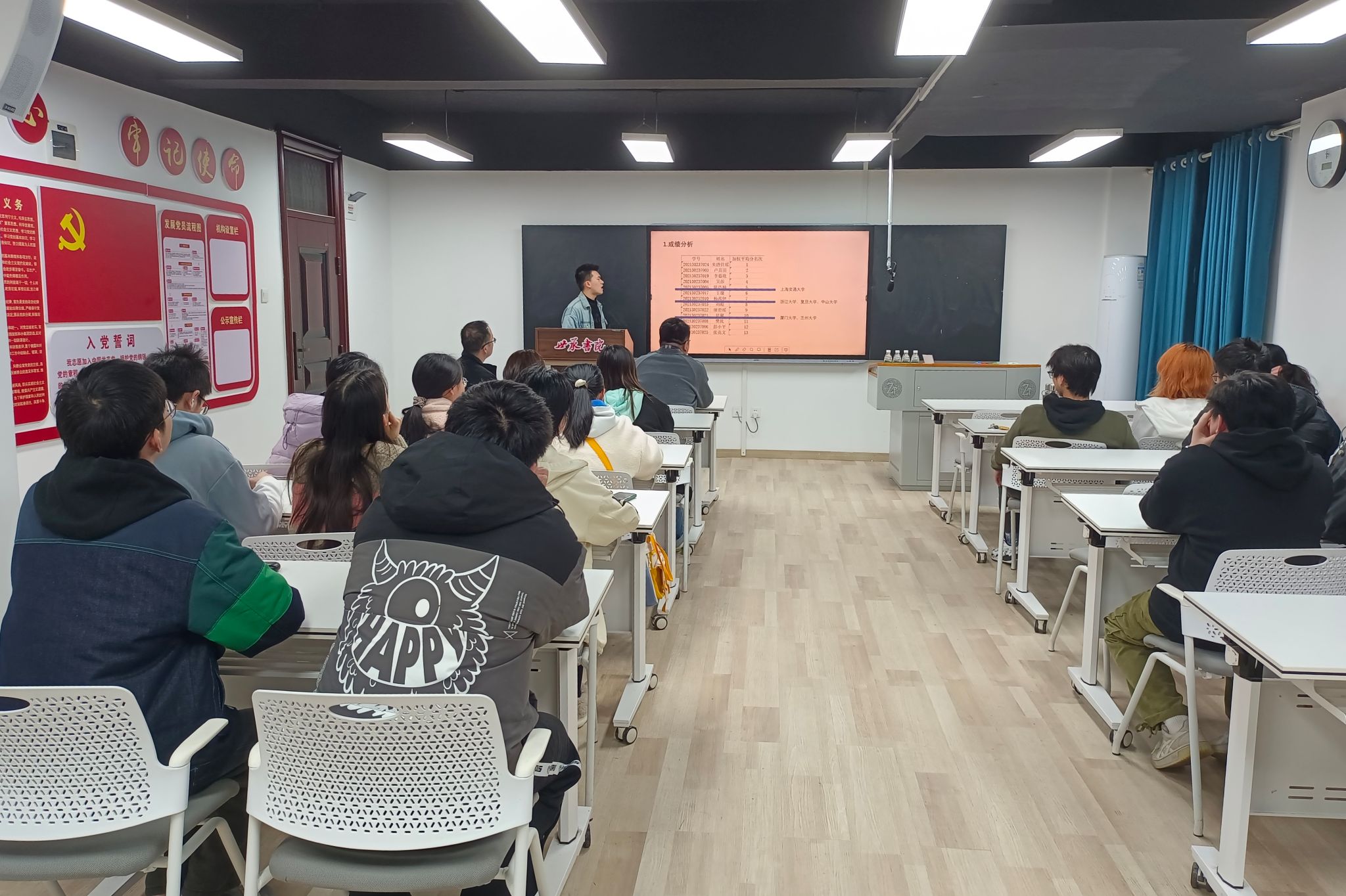 (通讯员 樊优)新学期,新气象。为了帮助同学们明确新学期的目标与方向,了解保研、考研以及就业的事宜,3月14日晚上,2021级浩青班于书院128研讨室召开了本学期首次班会。班会由班长陈浩楠主持,班导师杨立山和辅导员杜涛被邀请参加,2021级浩青班全体同学参加。