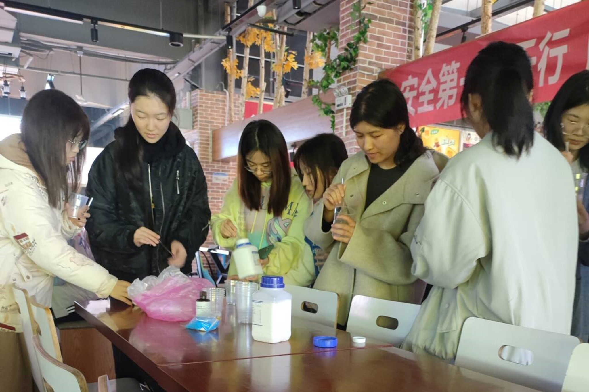 活动开始前,化协理事杨晴负责线上的宣传工作,及时推送活动的时间、地点,同时鼓励会员积极报名。副理事长张诗甜组织预实验的开展,确保实验方案可行。活动期间,会员们自行分组领取相关实验材料,每组组长统一调配硅酸钠溶液后平均分配给每个组员。组员各自将硅酸钠溶液倒入塑料杯,再向杯中加入氯化钙、氯化铁、硫酸铜等,然后静置并观察实验现象。会员们通过此次实验活动了解硅酸钠的相关化学性质,感受化学实验独特的魅力。