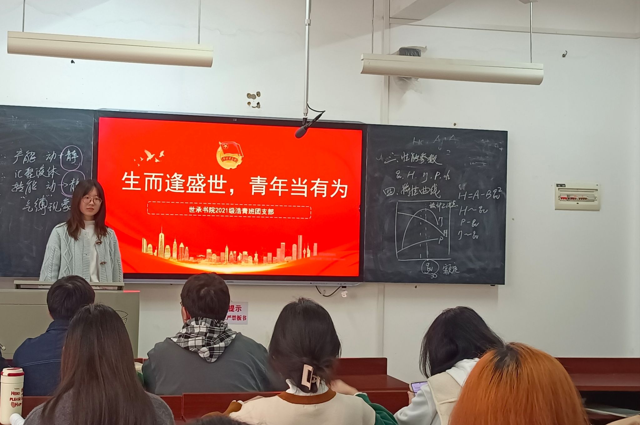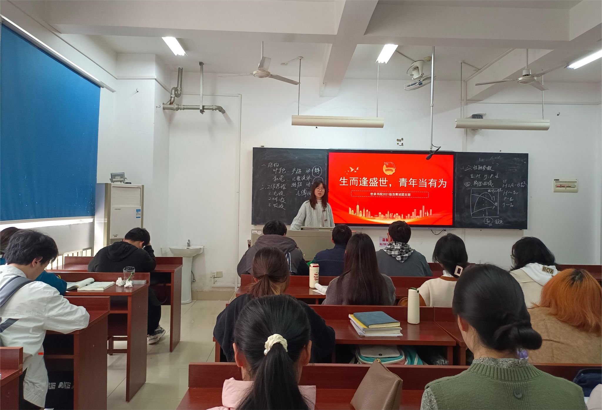 活动中,吴莎组织同学们思考,生而逢盛世,如何做有为青年,而不是浑浑噩噩碌碌无为。陈琳姣和朱唐佳瑶分享自己身为化学专业员工的理想信念,投身科研创新,积极进行学科学习,让青春之花绽放在专业之上。活动最后,吴莎表示,青年要苦练本领,勇挑重担,奋勇争先,不负时代,不负韶华,在新时代谱写青春之歌。