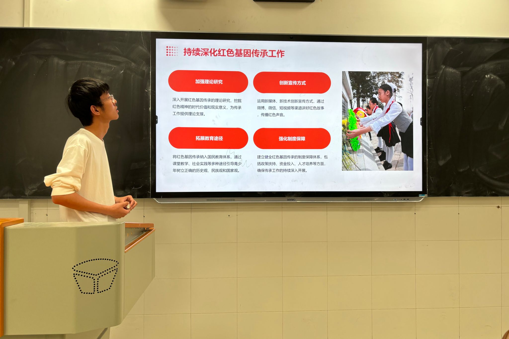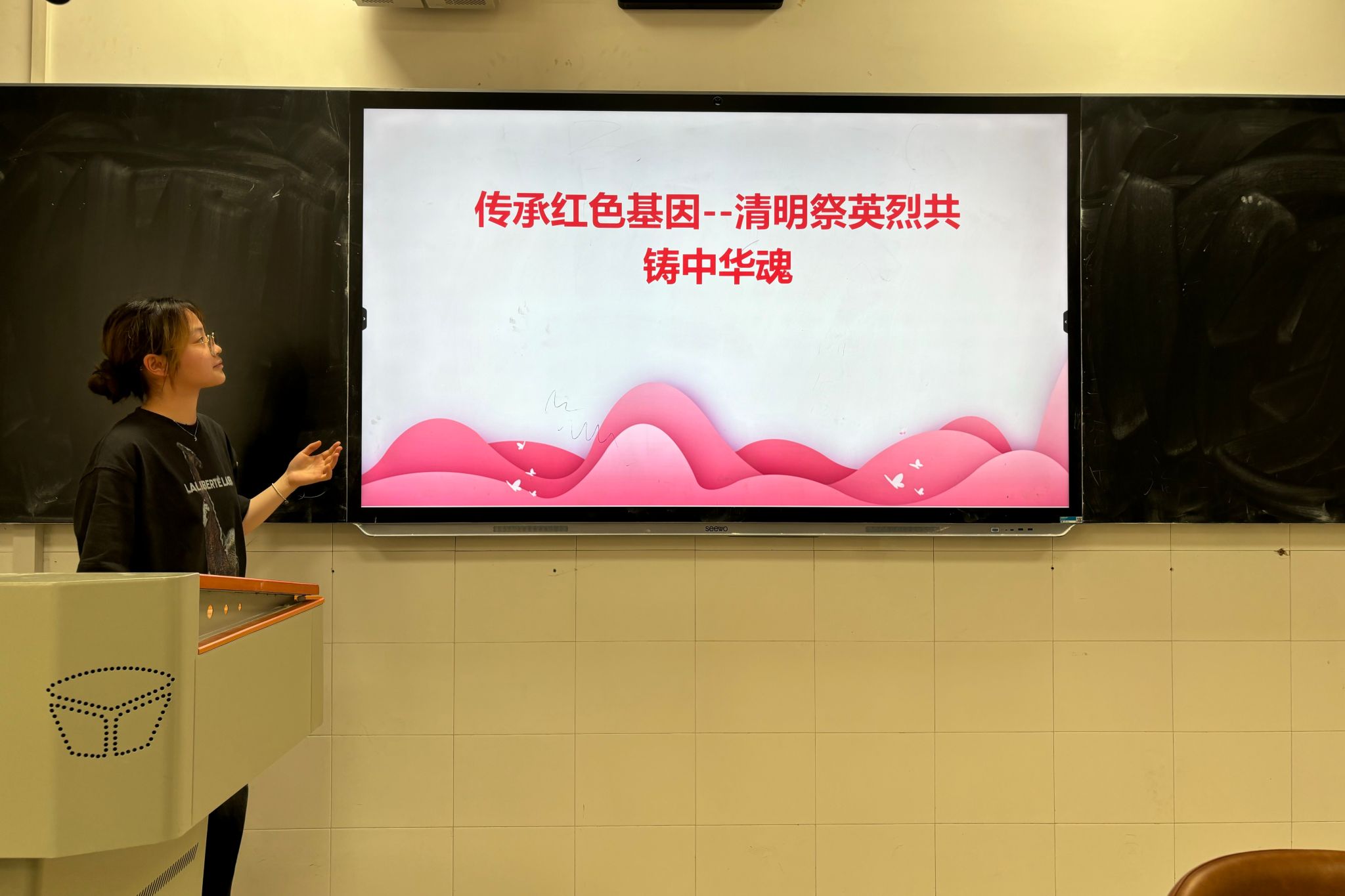 活动伊始,邵菁逸介绍了此次团日活动主题——传承红色基因--清明祭英烈共铸中华魂。此次活动旨在深切缅怀为国捐躯的英雄们,传承和弘扬革命先烈的崇高精神,激励青年团员继续前行。