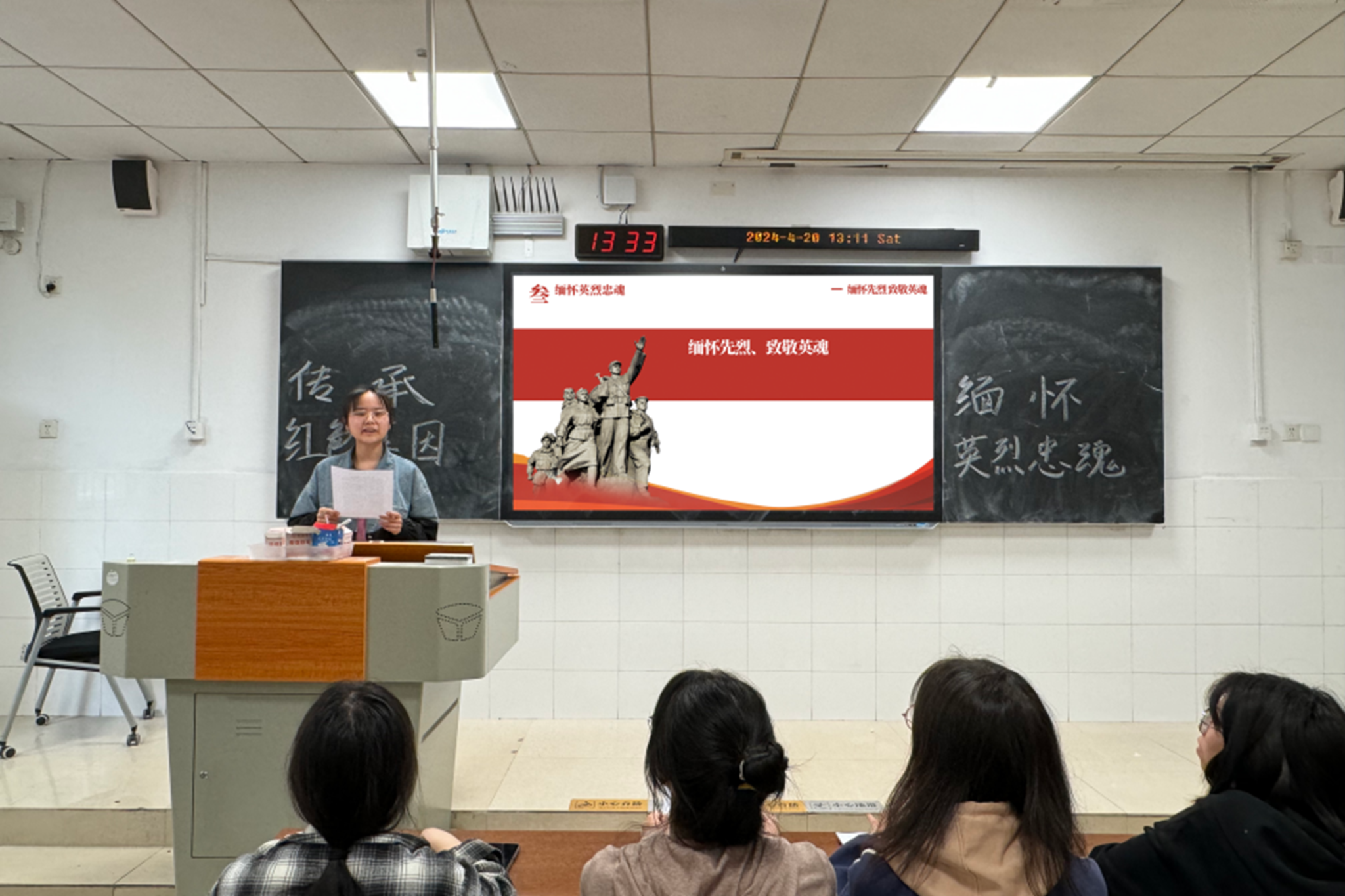 活动伊始,王燕介绍此次活动名称及主题,以PPT为途径详细讲解了相关英烈的生平以及“传承红色基因”的主要内涵,理事们再通过观看纪录片,进一步了解到先辈们的感人事迹,对于先辈们不屈的奋斗精神以及热忱的爱国之心有了更加深刻的感知与体会。在讨论过程中,理事们自由提问、积极发言,理事李思仪还以演讲的方式表达了对先辈们的缅怀与敬佩。会议最后,理事们依次分享参与此次“清明祭英烈,共铸中华魂”团日活动的感受与心得体会,王燕进行整理总结并宣布活动结束。