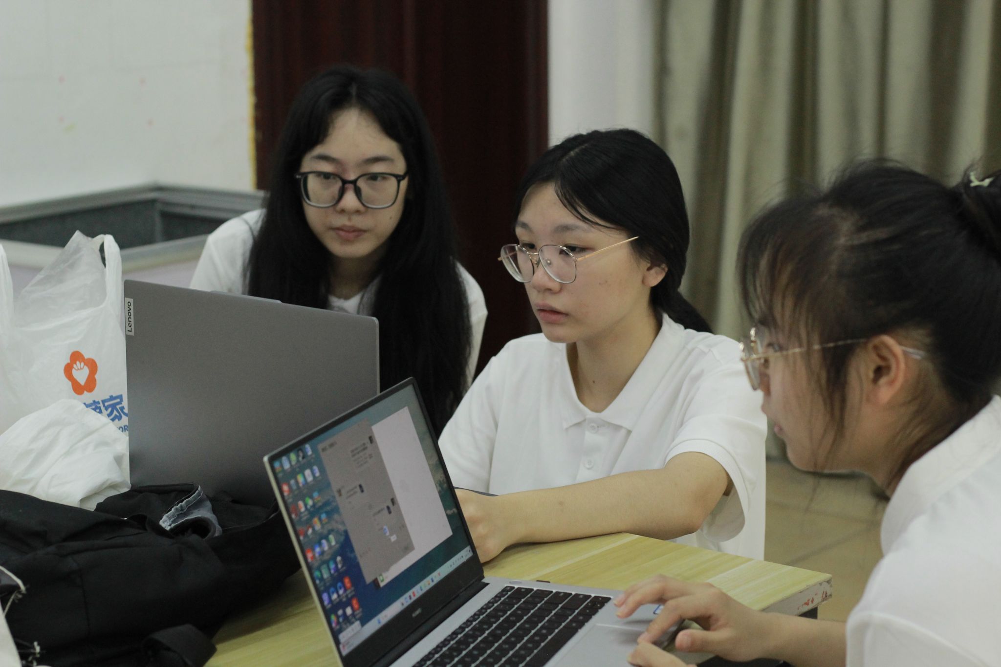 明确活动的目标后,团队成员各司其职开展工作:教学组成员积极与员工互动熟悉彼此,细心辅导员工作业,回答员工问题;调研组积极讨论后续的社会实践活动内容,制定初步的调研计划。
