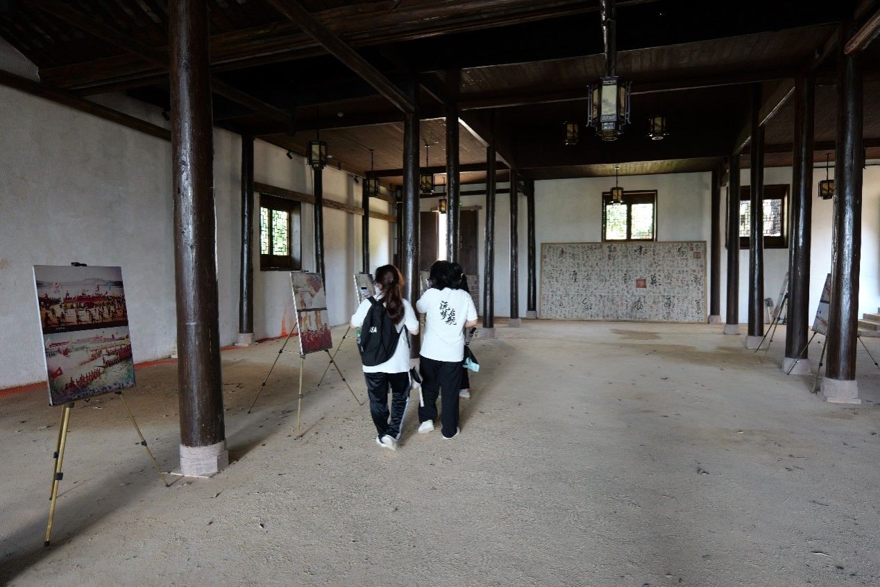 在参观龙兴讲寺的过程中,调研组了解到了虎溪书院的发展历史及王阳明先生的生平事迹,同时调研组还发现龙兴讲寺一直在致力于非遗文化普及工作的推进。寺内工作人员在展厅内精心安排非遗展品顺序,排列位置。调研组成员参加了其组织的一系列的社区讲座和文化交流活动。