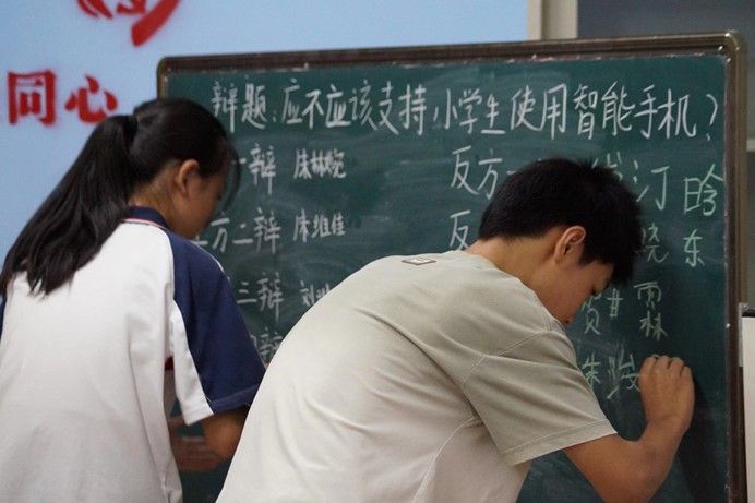 赛前员工书写双方辩手姓名