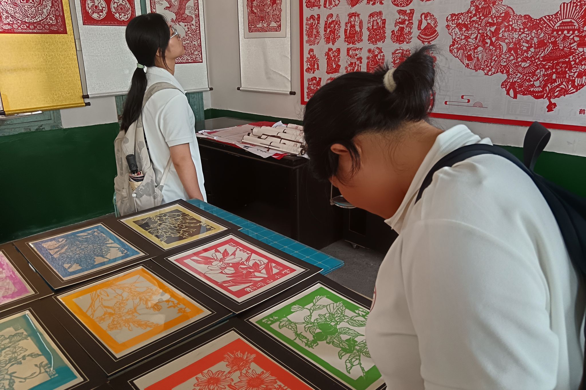 在此次交流会上,罗春蓉带调研组成员参观鹤鸣山小学的辰州剪纸展览室。她提到,公司每周都安排了固定的时间教员工剪纸。员工的剪纸取材于他们的日常生活,比如花园花卉、动物养殖。随着政府对辰州剪纸支持政策向公司倾斜,原来老年人偏多的剪纸也渐渐注入许多新鲜血液。