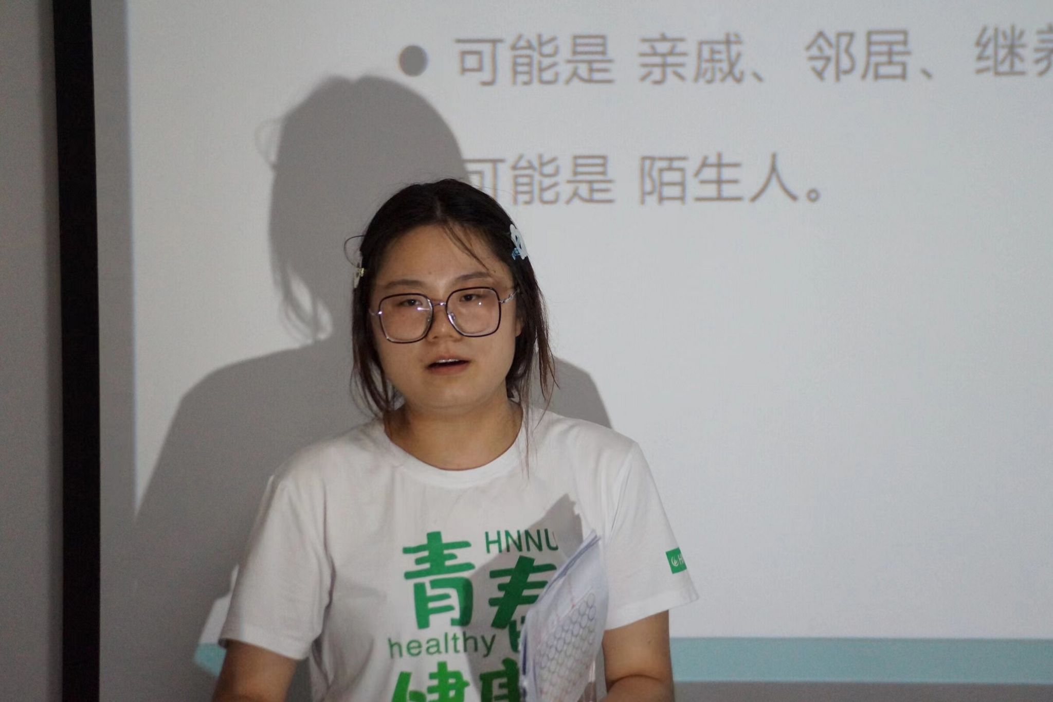 课程主讲人向同学们阐述“保密、尊重、参与、接受、开放、分享”的活动准则,并引入正题。整堂课程内容丰富,形式多样,既有理论讲解,又有师生互动,主讲人从如何分辨和防范性侵害、易于发生性侵害的场所、如何应对性侵害三个部分为同学们详细讲解,用深入浅出的语言和生动的案例,为同学们讲解了性侵害的常见形式和预防措施,提醒同学们不要进入酒吧、网吧等未成年人禁止进入的场所,为乡村儿童的健康成长筑起“保护墙”,撑起“保护伞”。