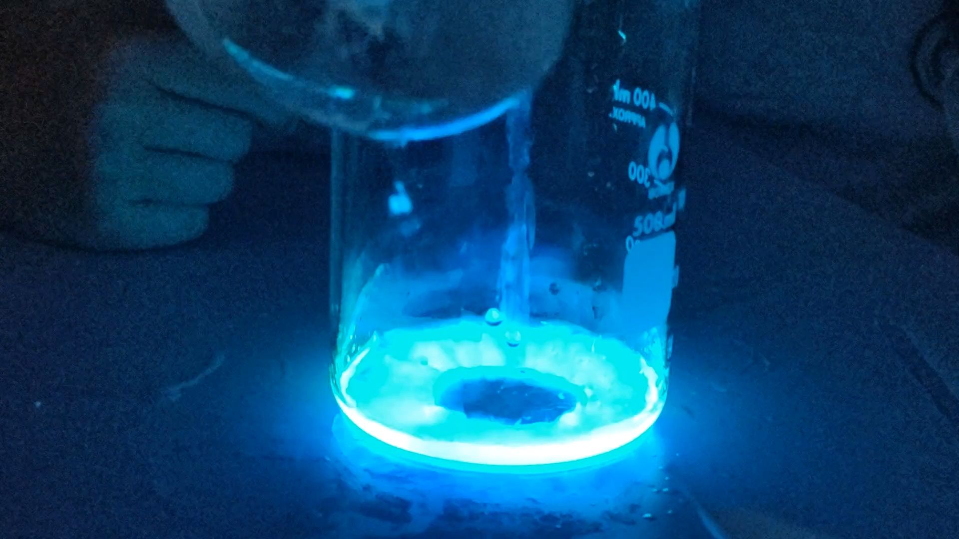 在此次课程中,王若晴从自然界中“蓝眼泪”现象引入,进而引出化学版“蓝眼泪”鲁米诺荧光实验这一主题。在鲁米诺荧光实验开始前,王若晴详细讲解实验步骤及安全规范。在志愿者的协助下,同学们通过一系列操作过程,观察到了鲁米诺在碱性环境中与过氧化氢反应发光的实验现象,从而完成了化学版“蓝眼泪”实验。活动过程中,志愿者们带领同学们积极思考、主动探索,为同学们答疑解惑,引导同学们交流互动,提高同学们的积极性。