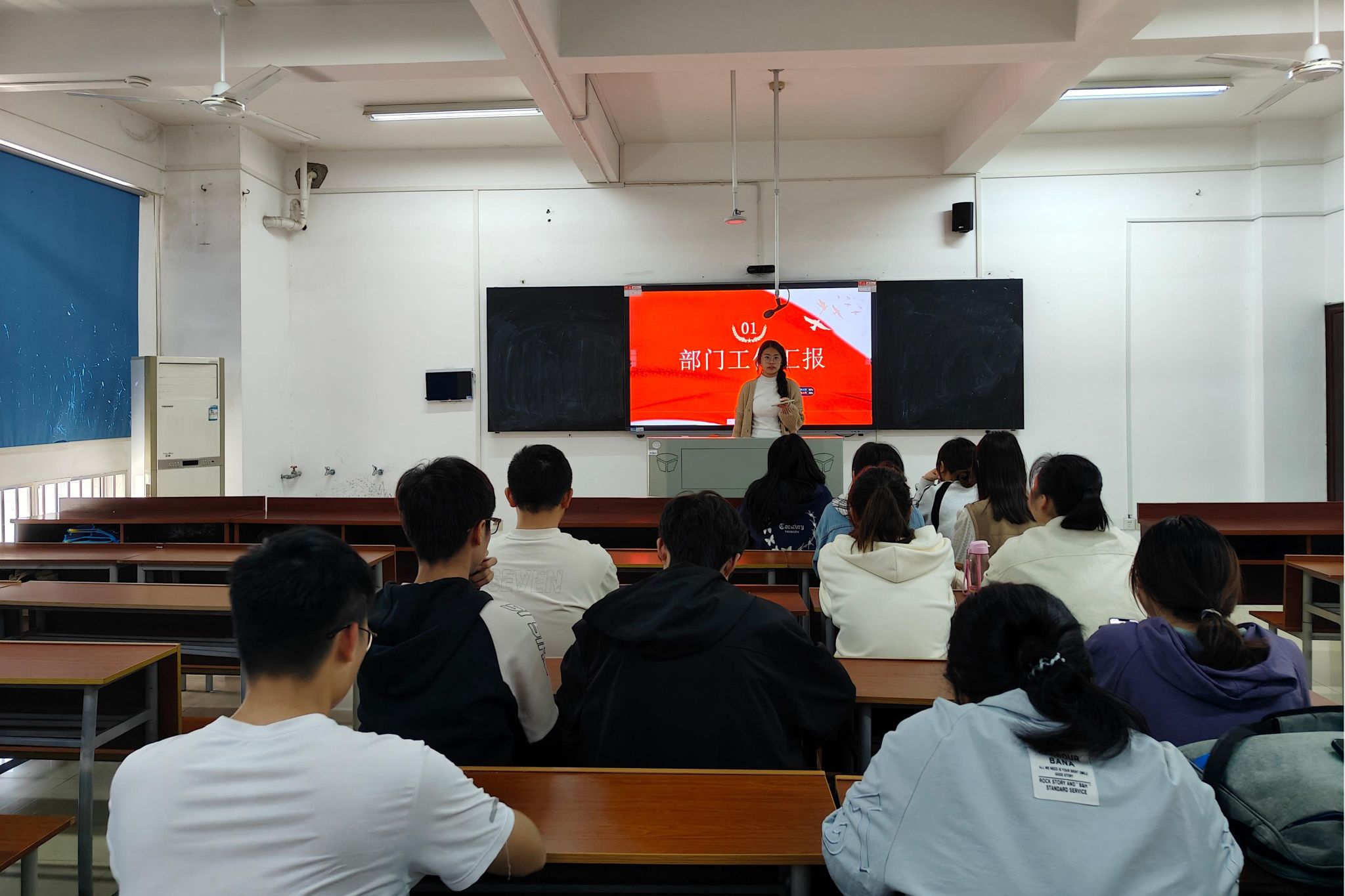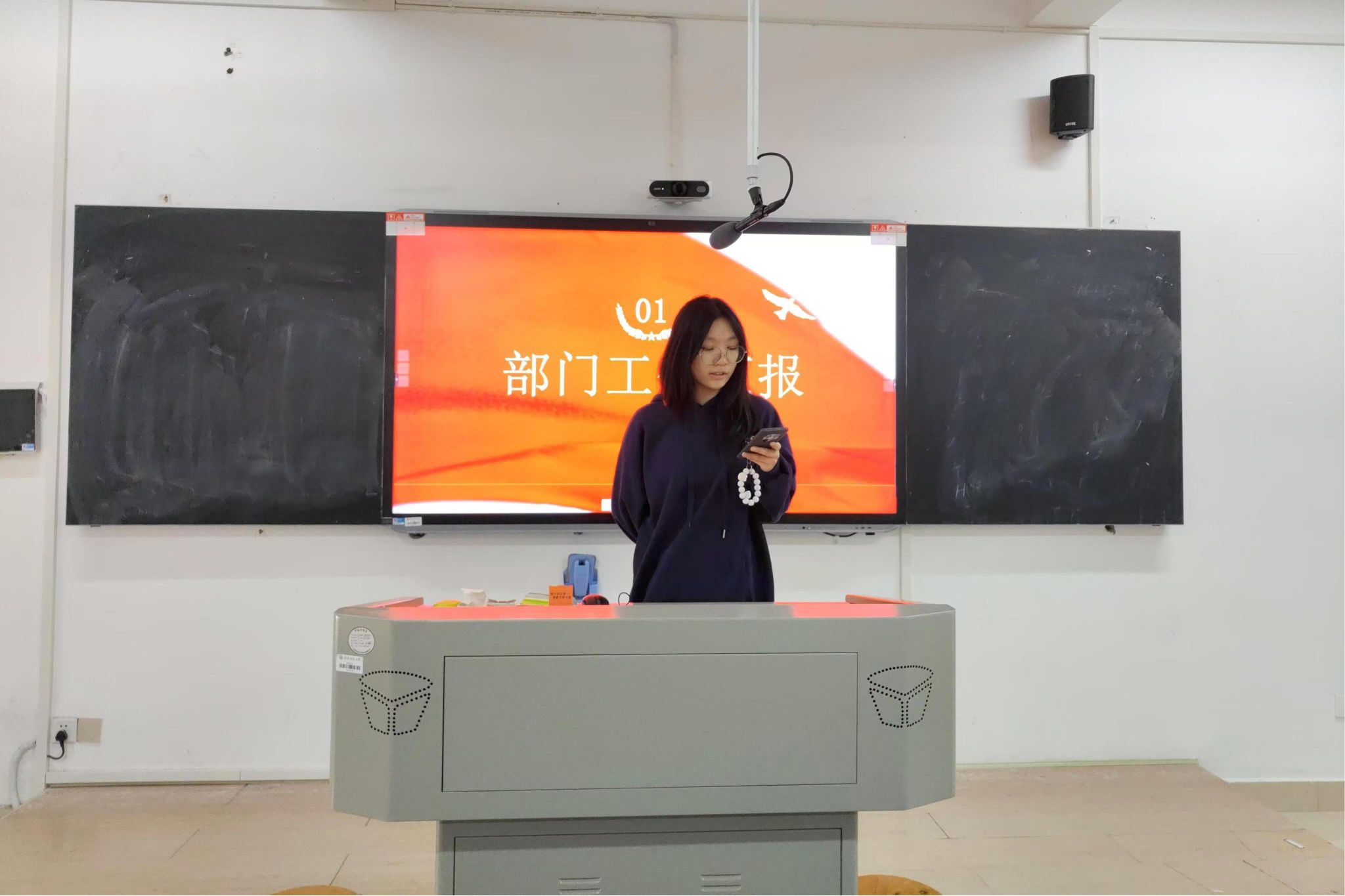 学社管办公室第一负责人谭佳芸汇报部门工作