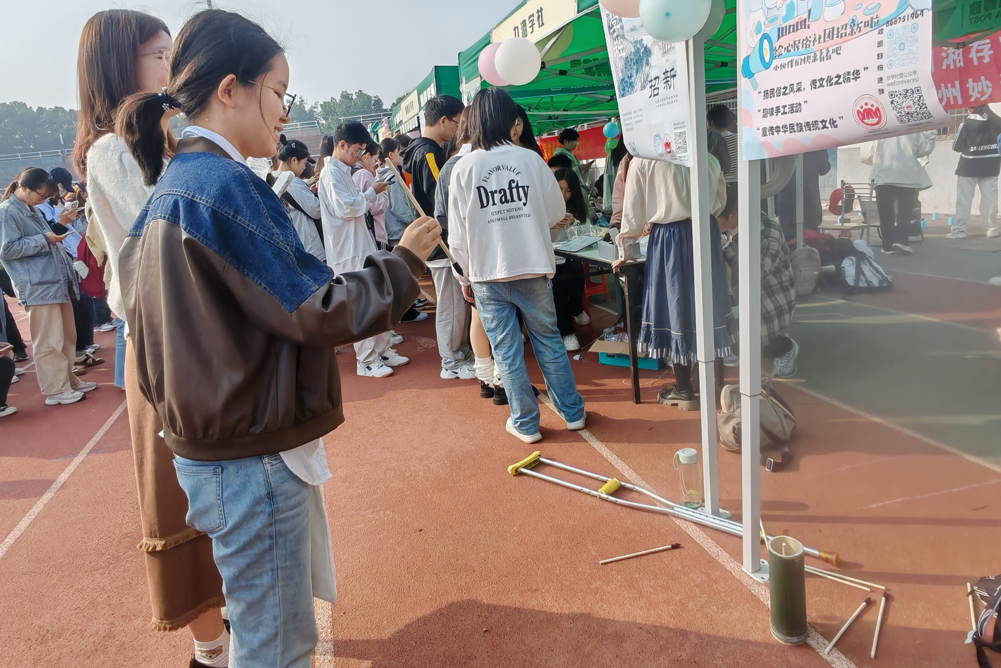 此次活动由绘心民俗社理事长戴倩和副理事长李思仪带领理事会成员策划和组织。活动伊始,招新区的理事们负责引导同学完成招新问卷的填写、会员群的加入,以确保招新工作有序进行。与此同时,手工体验区和互动区的活动也在火热进行。同学们在理事们的引导下,通过亲手制作手工艺品,体会做手工的乐趣。百团迎新节目期间,绘心民俗社和化学与社会协会携手呈现了歌曲《果敢》,展现了化工院学子昂扬向上的精神风貌。活动结束后,理事会成员认真核对会员信息,提醒报名成功的会员及时进群,督促会员修改群备注以便后续的沟通交流。