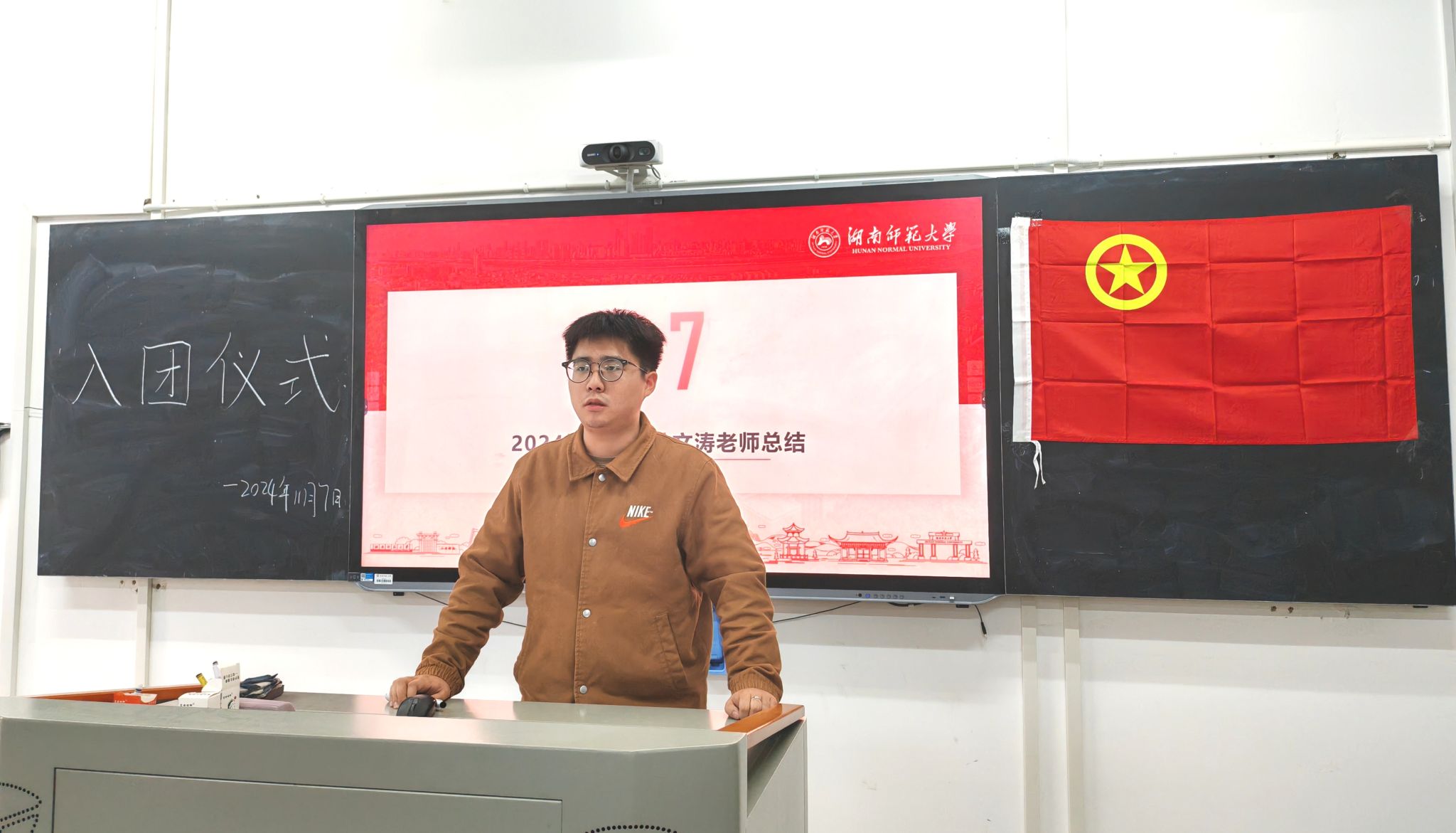 (通讯员 潘莎莎 周佳)挺膺担当砺青春,凝心聚力担使命。11月7日12时30分,2024年新团员入团仪式在化工院117教室举行,2024级辅导员孙文涛出席此次活动。参加会议的还有2024年新发展团员,第十五届“问鼎”团校全体成员,院团委青年发展工作部,组织部和基层组织建设部成员。组织部陈秋潭主持仪式。