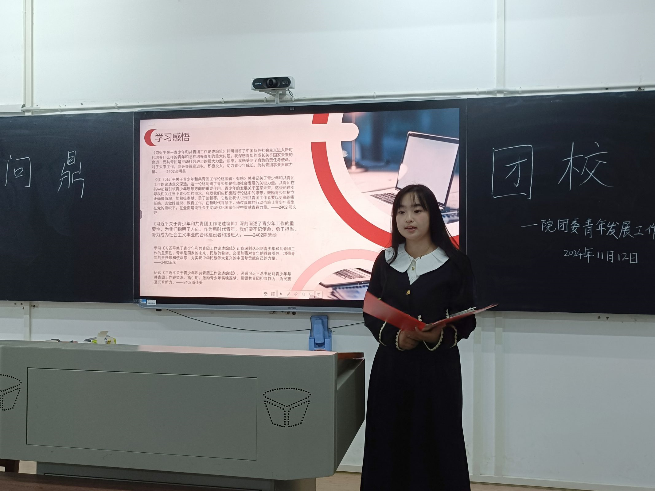 此次理论学习课堂带领团校成员深入学习《习近平关于青少年和共青团工作论述编辑》。2024级各团校小组分别从青少年的思想引领、价值观塑造、成长成才路径以及共青团工作等不同角度切入,轮流上台汇报学习成果,并从生活实际出发,畅谈学习体会。其他学员积极思考,记录要点,纷纷表示会将所学知识内化于心、外化于行。