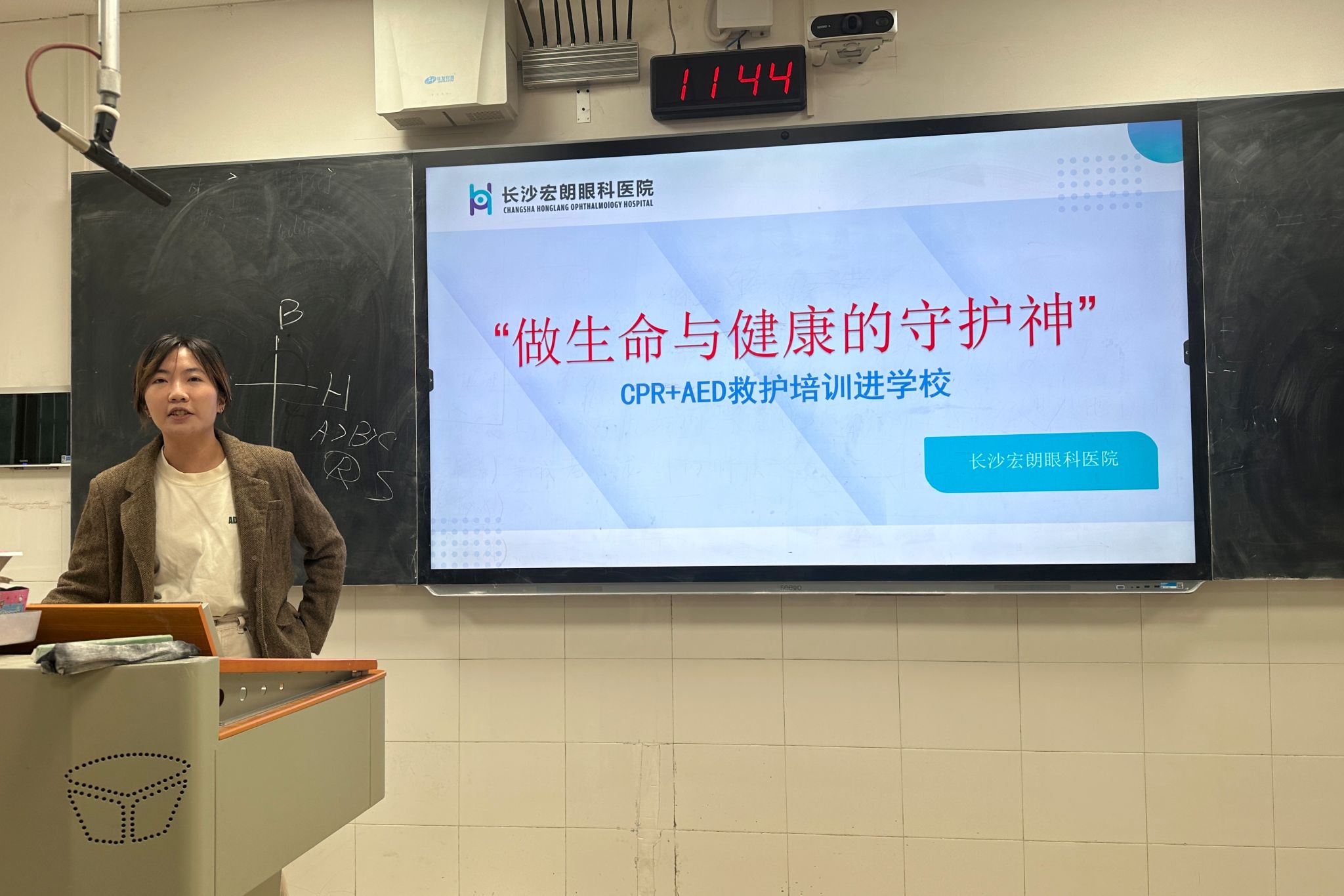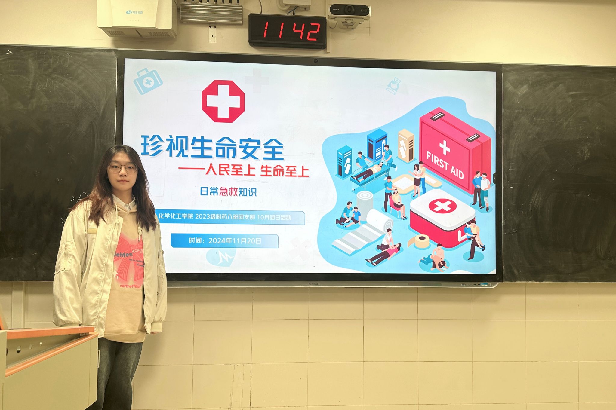 (通讯员 滑子曦)11月20日11时40分,为增强同学们的生命安全意识,提升自我保护能力,2308班团支部在至善楼105教室举办了“珍视生命安全——人民至上 生命至上”主题团日活动,此次会议由2308班团支书滑子曦主持,并邀请到了长沙红十字会的工作人员为同学们科普急救知识。