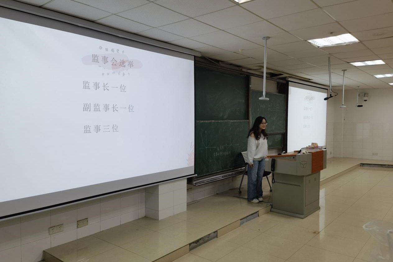 活动伊始,姚霁凌向会员介绍社团的成立背景以及社团的主要活动,并对大家提出的疑问进行解答。随后理事会成员轮流上台进行自我介绍。自我介绍环节结束后,姚霁凌宣布活动进入下一环节——监事会成员的选举,监事会候选人轮流上台发表竞职演讲。会员们通过线上投票选举出最终的监事会成员,监事长为张宸,副监事长为李安健,监事为张睿勐、李伟熙、蔡昌洋。为了活跃现场气氛,拉近会员间的距离,社团还组织了听歌识曲、你画我猜等互动小游戏,并以小礼品作为奖励。最后,姚霁凌宣布此次活动结束,会员们有序离场。