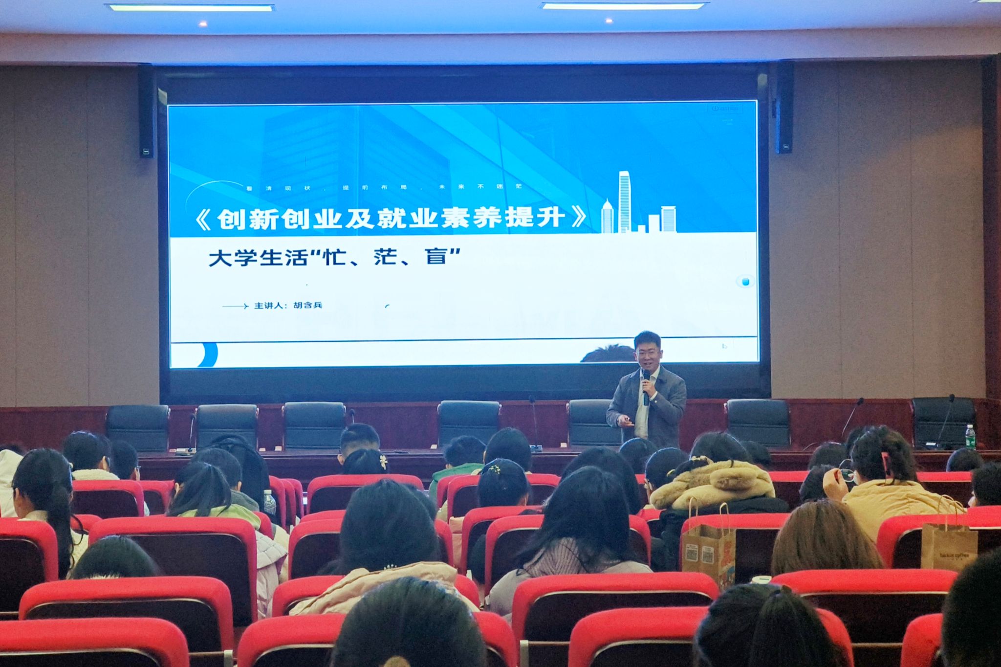 (通讯员 熊志惠 樊思乐)11月22日中午,365英国上市集团在报告厅举办创新创业及就业素养提升讲座。此次讲座由黑马科教集团创始人胡含兵担任主讲人,2023级及2024级部分同学参加讲座。