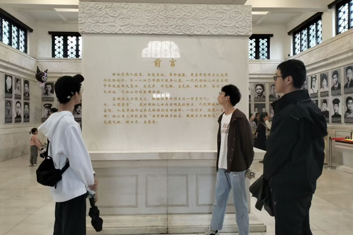在青春奋进的征程中,红色文化宛如熠熠灯塔,指引青年前行。2309班等六个团校小组来到岳麓山寻访一代伟人的革命足迹,聆听有关岳麓山的红色故事。2402班等六个团校小组前往湖南烈士公园参观烈士纪念馆。它承载着厚重历史,铭刻着先烈们的不朽伟绩,各位学员不禁感叹于多位烈士的感人事迹。2409班等六个团校小组在新民学会成立会旧址瞻仰蔡和森同志故居、参观新民学会旧址陈列馆,认真听取专题讲解并驻足观看。发黄的旧照片和报刊展示出革命先辈对中国共产党成长壮大所做出的努力与贡献,雕塑及影像引领着大家学习革命先辈无私奉献、坚持不懈和艰苦奋斗的伟大精神。