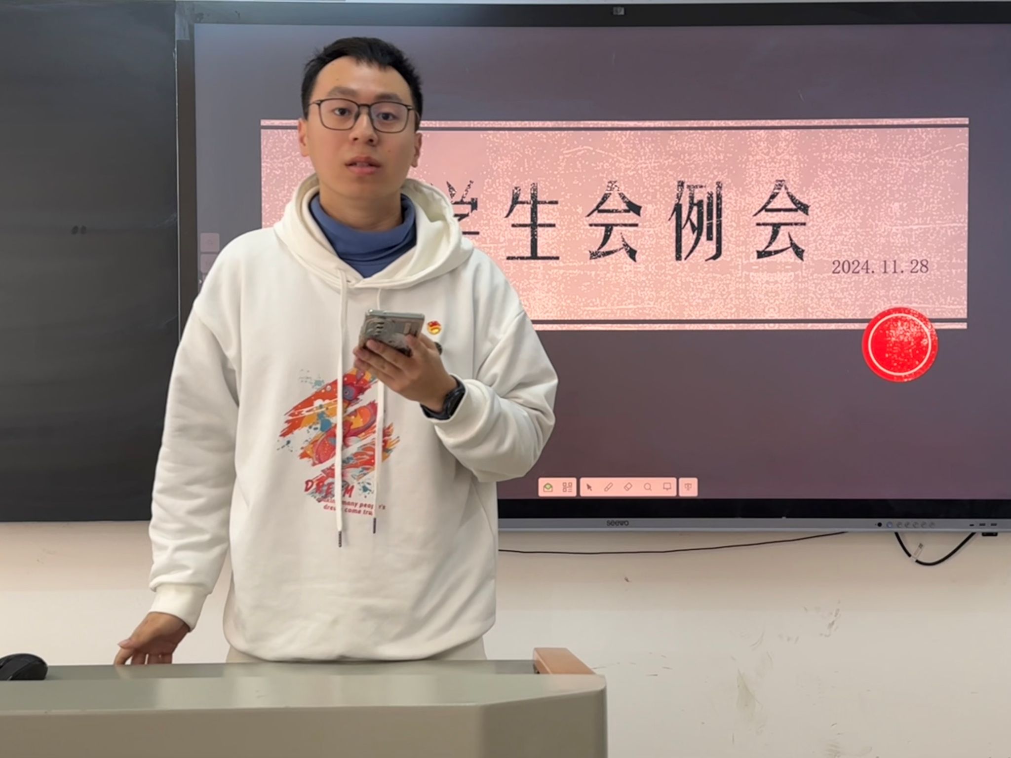 各部门工作汇报完毕后,主席团成员范俊开展了第48届员工会秋季理论思想培训大会。在此次会议中,范俊带领化工院员工会全体成员对微信推送《全国学联:清新阳光的员工会容不得颐指气使的“员工官”》以及《关于加强新时代新征程学联员工会工作的实施意见》(学发〔2024〕2号)》等6份文件进行了学习。在学习过程中,范俊认为员工会的职能定位是党领导下的员工组织,员工会组织要牢记为党育人,明确自身职能,服务同学需求,深化改革创新,建立信息公开制度,打造清新阳光员工会;员工会成员要加强对党团理论知识的学习,严格遵守法律法规,努力提升自身本领,积极关注员工需求,坚决抵制形式主义。