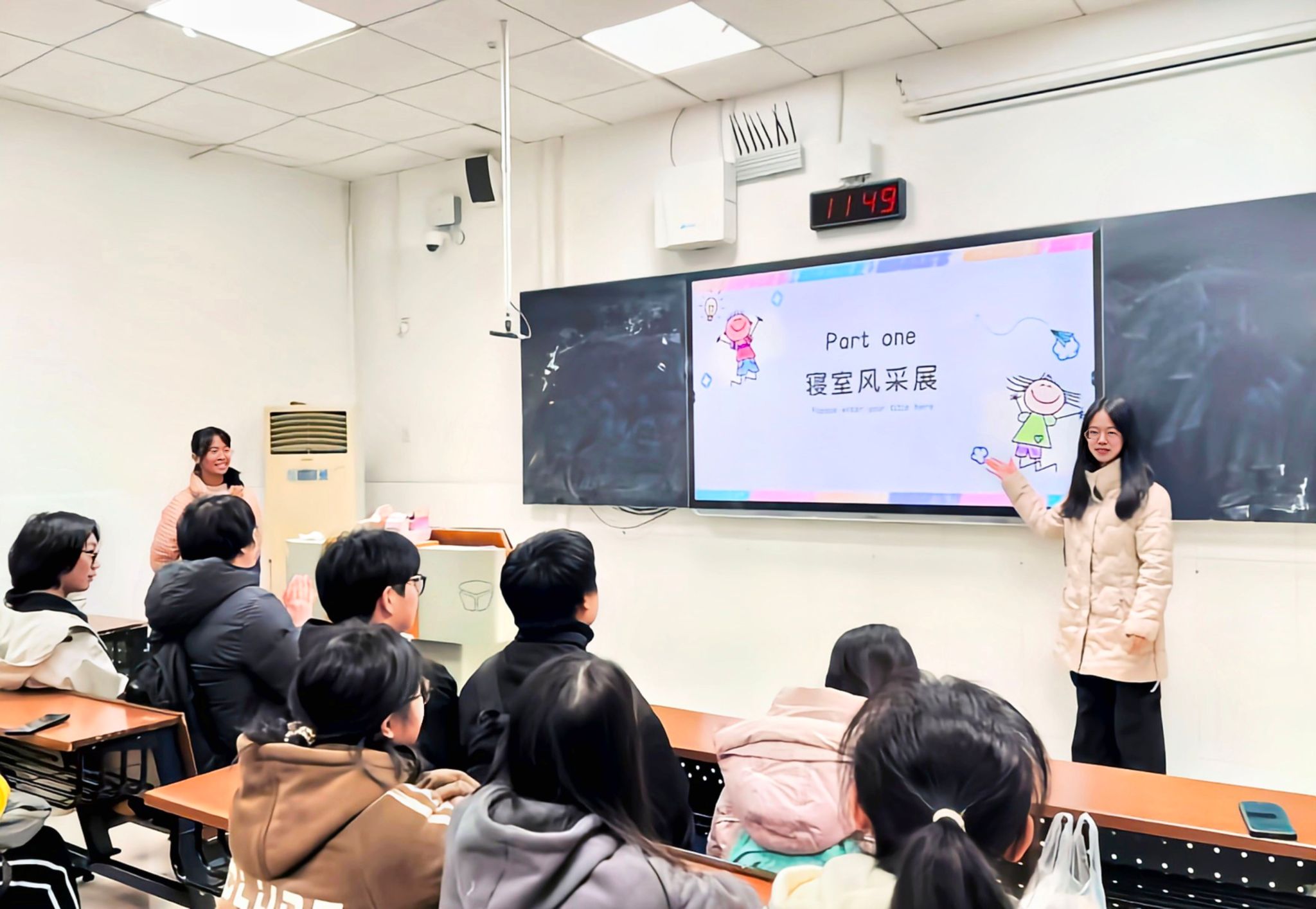 活动伊始,生活委员舒玉芝提出寝室成员之间要相互包容理解,共同成长进步,共建良好的寝室文化。在寝室风采展示环节中,潘楚楚与朱士豪向同学们介绍了自己寝室具有的特色规定,并分享了一些实用生活小技巧与趣味故事,现场气氛轻松愉快。通过一系列的小游戏和互动环节,各寝室成员之间更默契、对彼此有了更深的了解。
