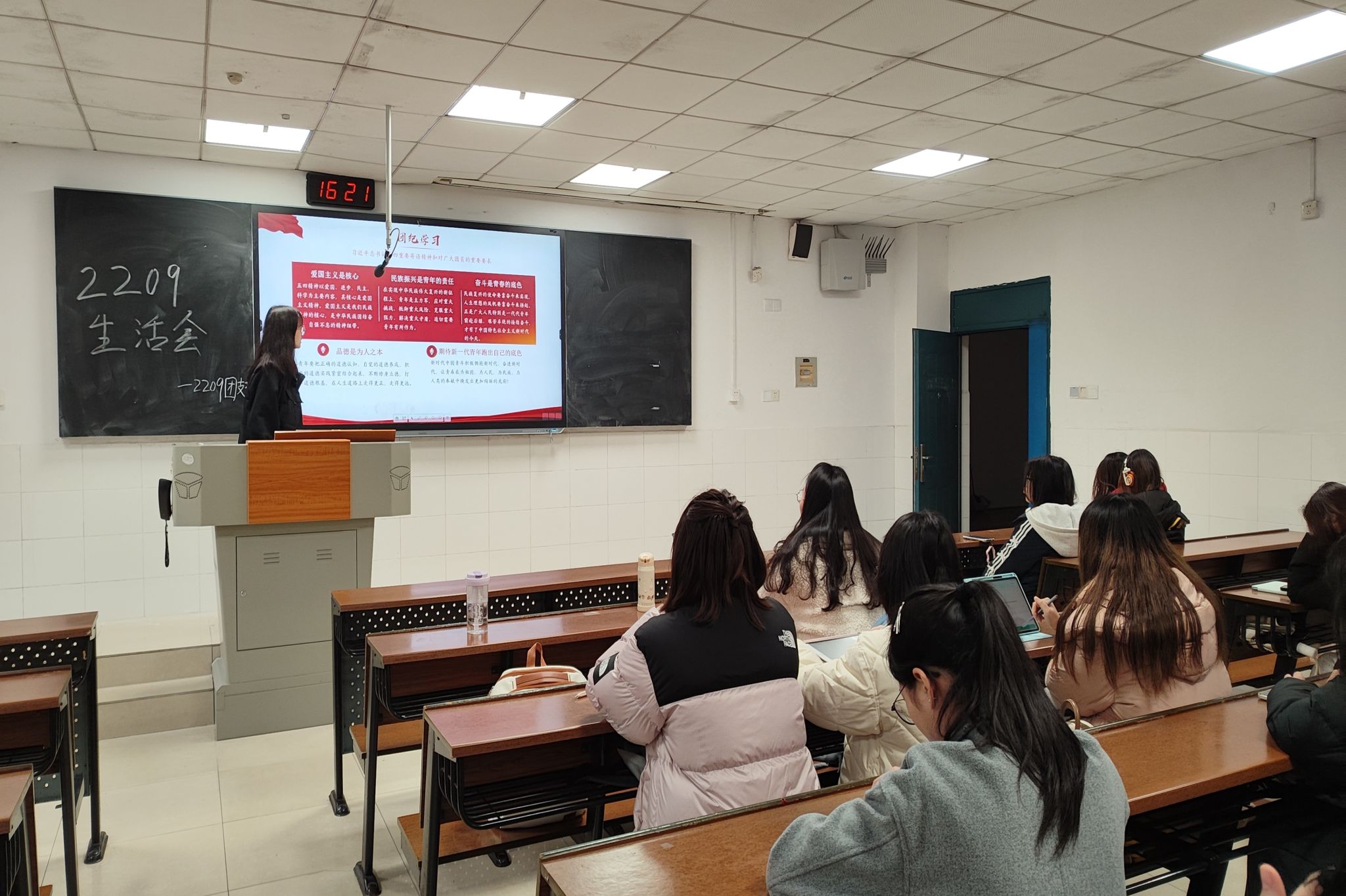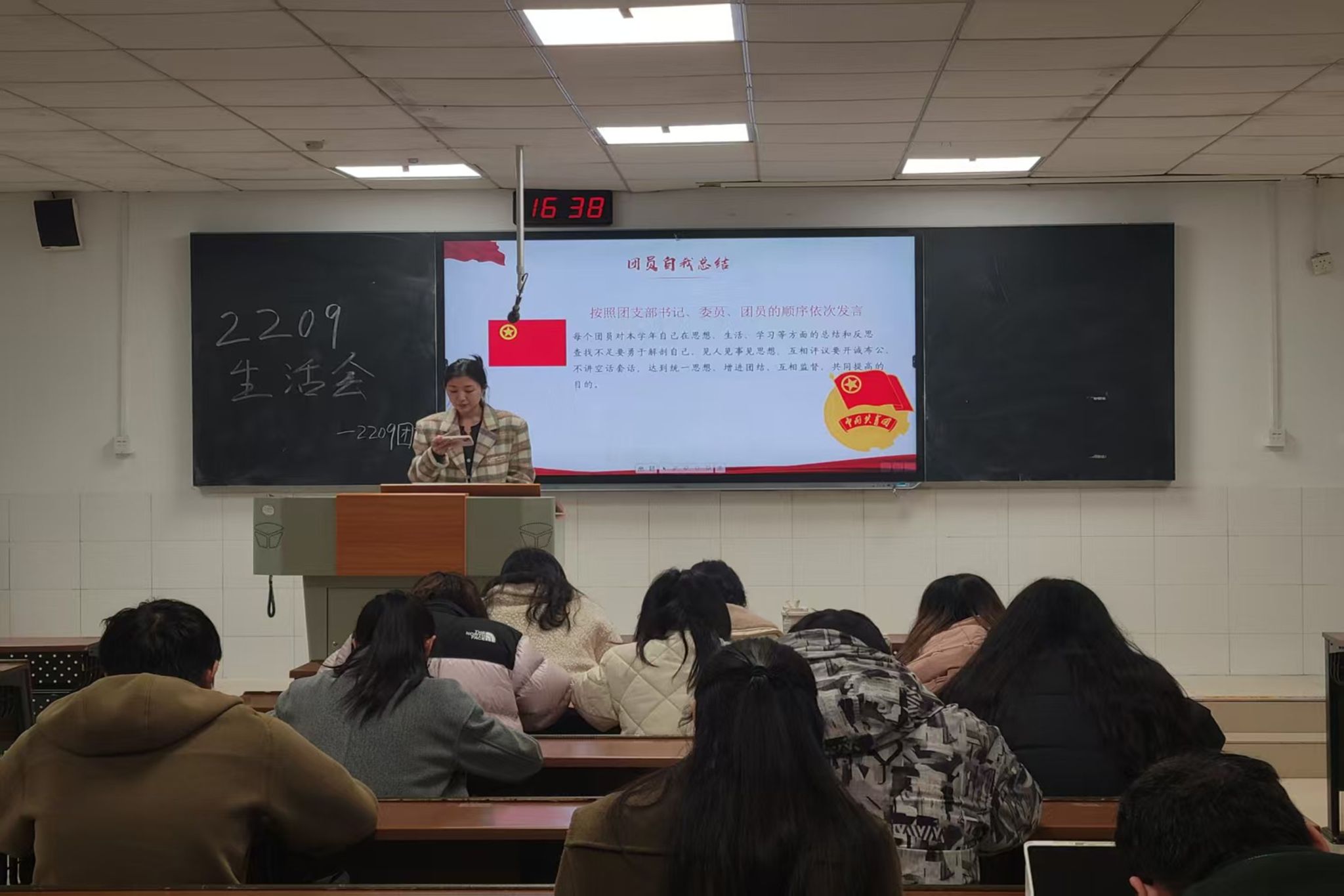 团支书带领同学们进行团纪学习
