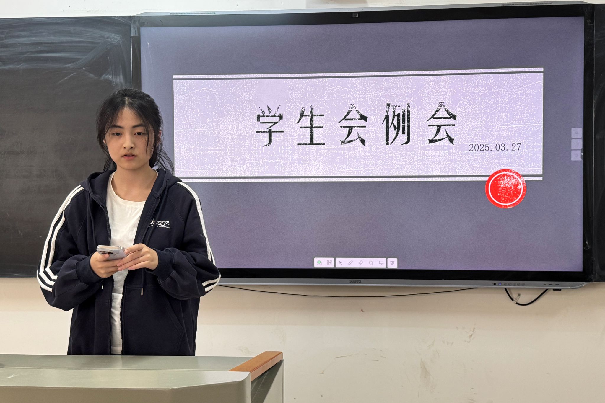 会议伊始,各部门依次汇报近期的工作情况以及未来的工作计划。其中,办公室已完成第348期快乐周末谈准备工作及春季思想培训会,正在进行月报表的制作。健服部已完成结核病防治宣传微推文案制作及女生节线下活动通讯稿的撰写,正在进行女生节线下活动相关微推的制作及健美操训练。宣传部已完成各类微推说说的发布,正在进行健美操海报的制作。学发部已完成第五周考勒微推和“铸牢中华民族共同体意识建设伟大祖国建设美丽家乡”演讲比赛线下比赛通知的发布,正在进行自习打卡活动。文体部已完成太极拳比赛预热招募通知的发布。权益部已完成3月第一次院检微推制作,正在进行“同心追梦”助学金申报、贫困生补建档和调档工作以及应善良材料的申请补交。主席团成员范俊提醒大家按时完成月报表,同时提醒各位部门第二负责人及干事准备好述职报告。