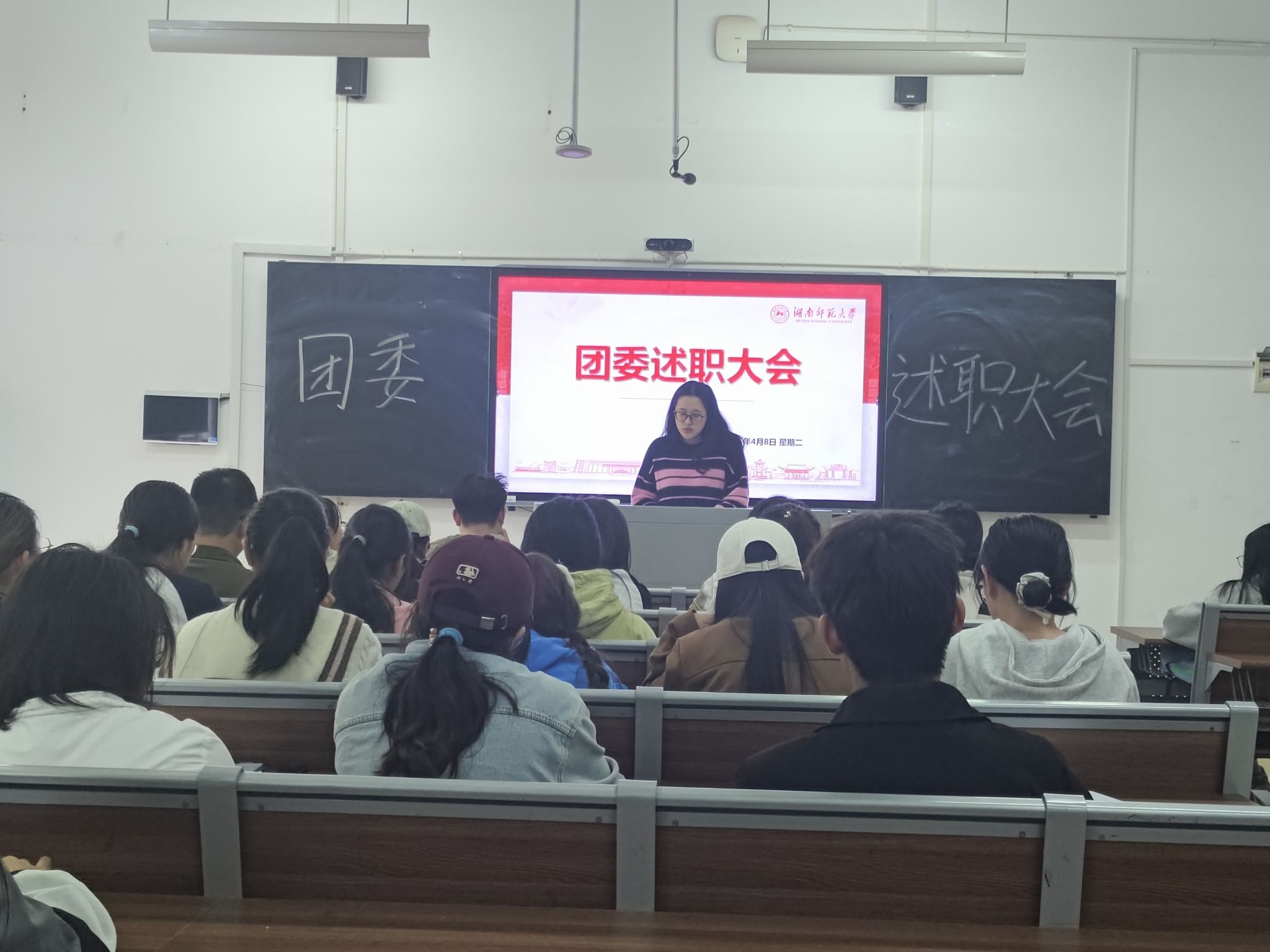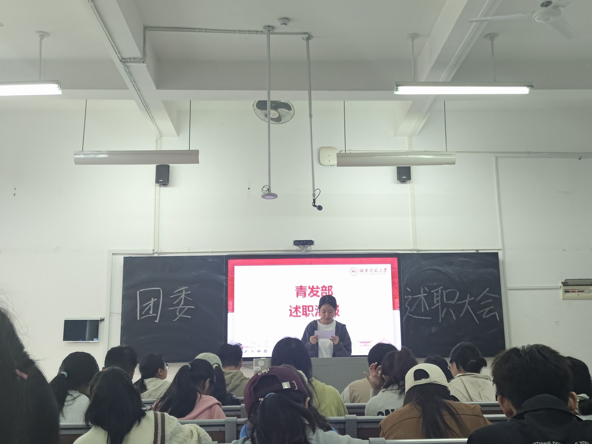 团委负责人蔡紫婧总结此次述职大会,换届工作临近,团委各部门成员务必站好最后一班岗,保持工作的高标准与严要求,同时鼓励干事们以积极的心态把握机遇,努力去争取更高的职位。