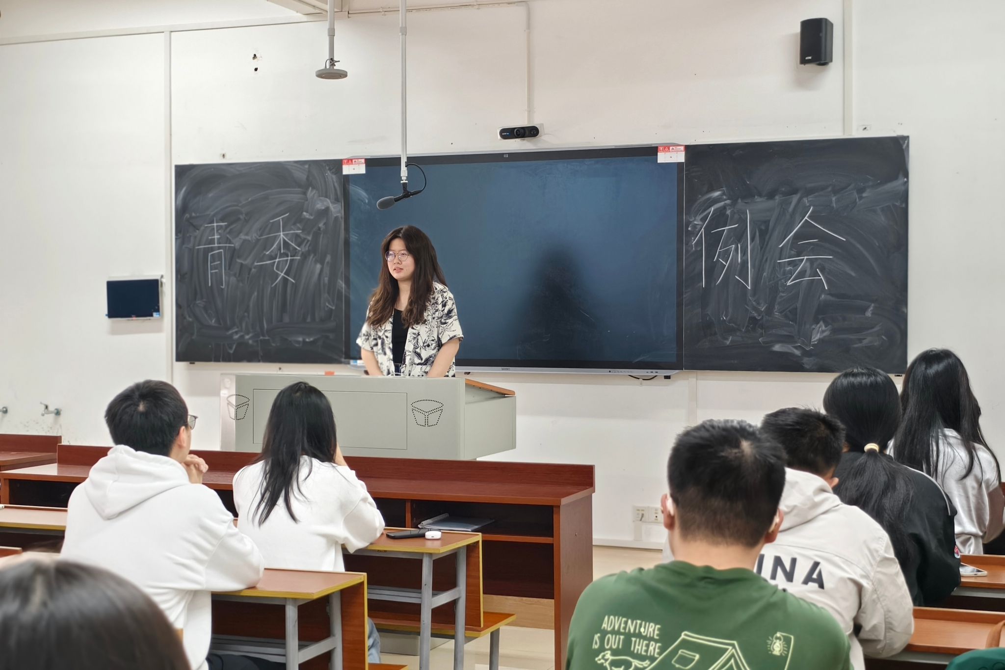 图为青工部第一负责人谢北进行工作讲话