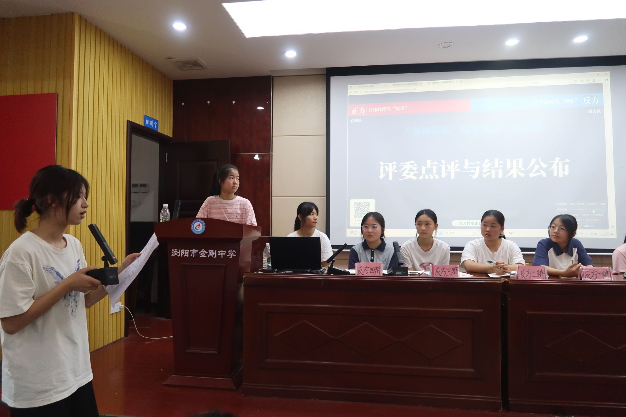 辩论赛围绕“去珠峰班当凤尾(正)还是去普通班当鸡头(反)”的辩题展开。正方辩手从优质学习环境对个人成长的推动作用切入,结合身边案例阐述高水准平台带来的资源优势与进步动力;反方则聚焦个体自信心培养与综合能力锻炼,提出在适配环境中更易获得全面发展的观点。双方在立论、驳论与自由辩论环节中,通过逻辑分析与观点交锋,展现出对辩题的思考。