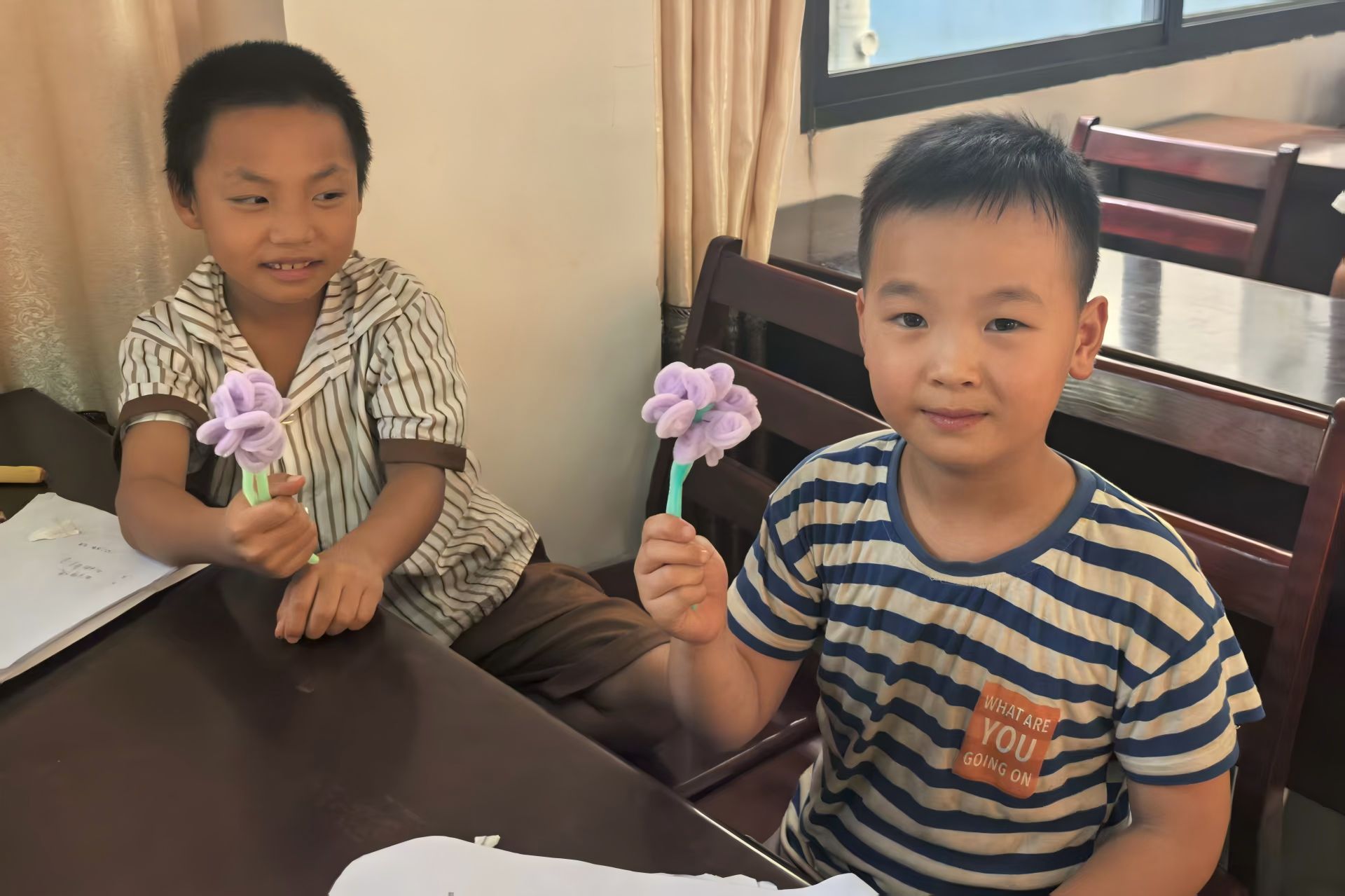 此外,团队成员特别指出,在进行塑形操作的过程中,维护扭扭棒的整洁与有序有助于防止在制作过程中产生不必要的混乱与资源浪费。员工们专注于手工作业,团队成员协助员工调整细节。课程后半段,员工完成作品,团队成员组织拍摄员工作品,并与员工交流,了解其在手工过程中的感悟。