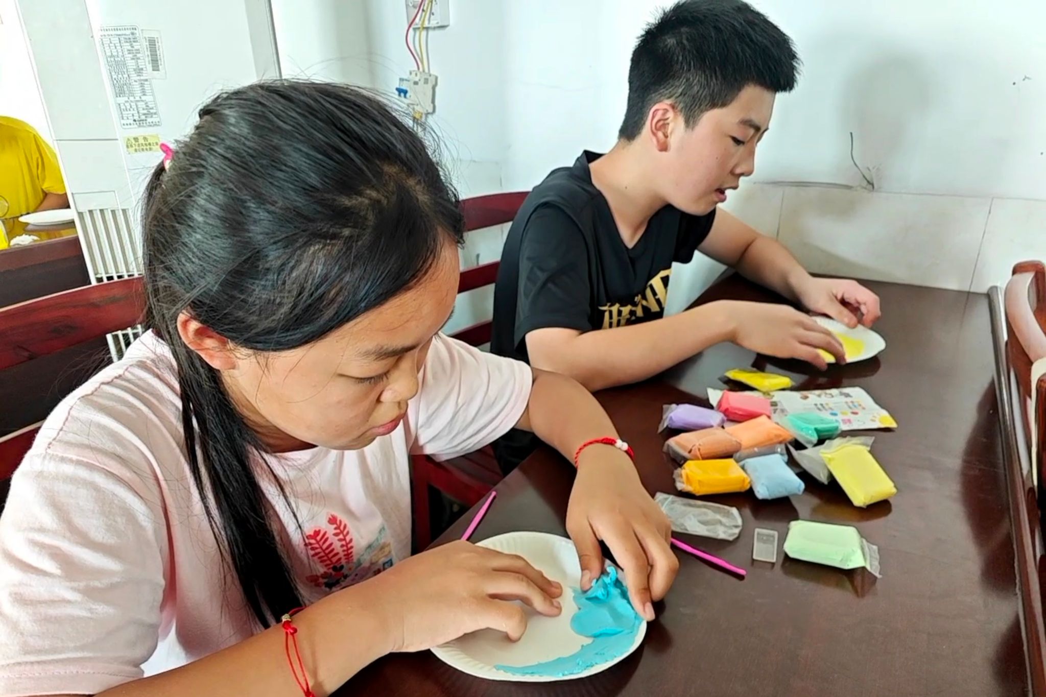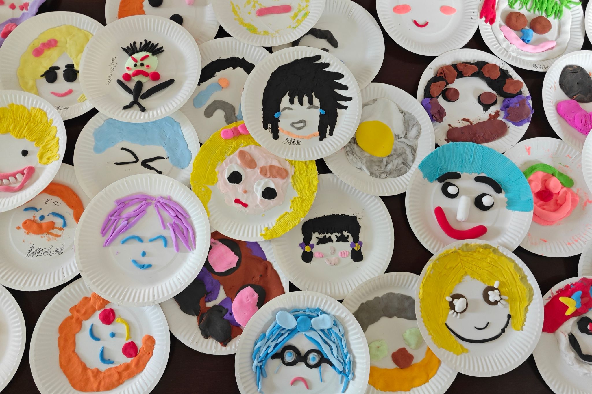 课程设置“手工制作”内容,主讲人分发材料,鼓励孩子们用五彩斑斓的黏土自由创作,将内心的抽象感受转化为情绪脸谱。员工专注塑形积极完成属于自己的“情绪艺术品”。