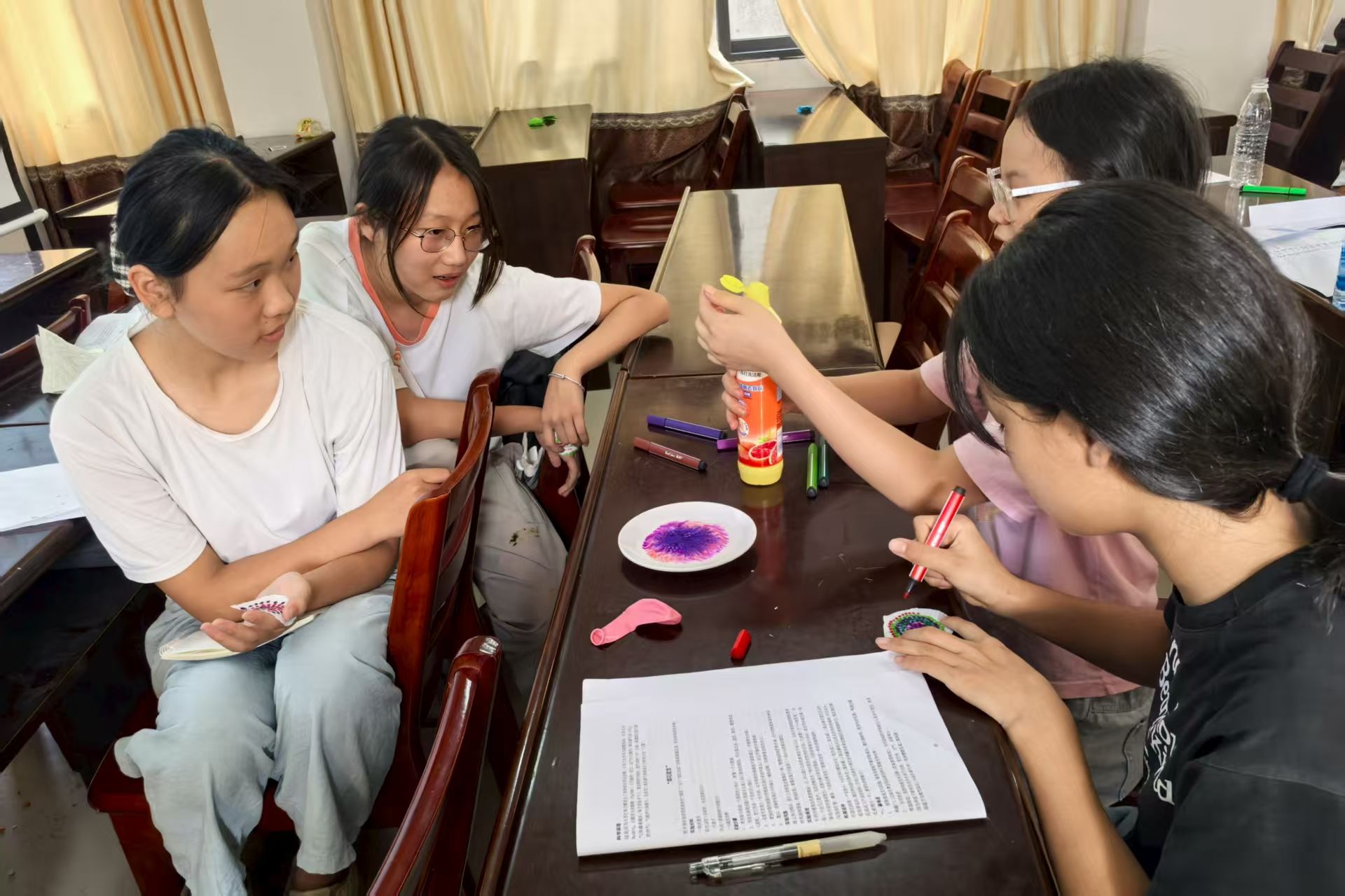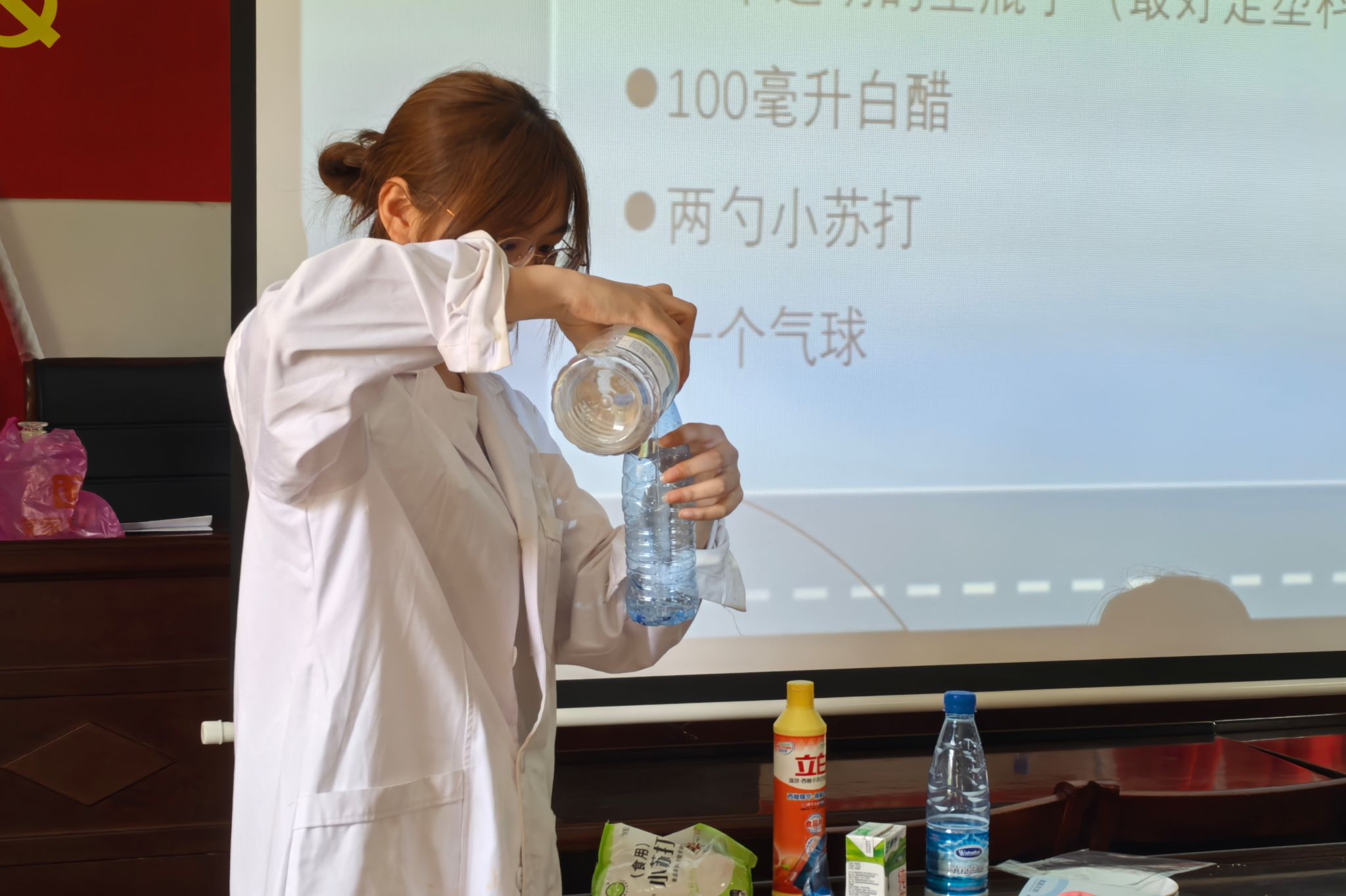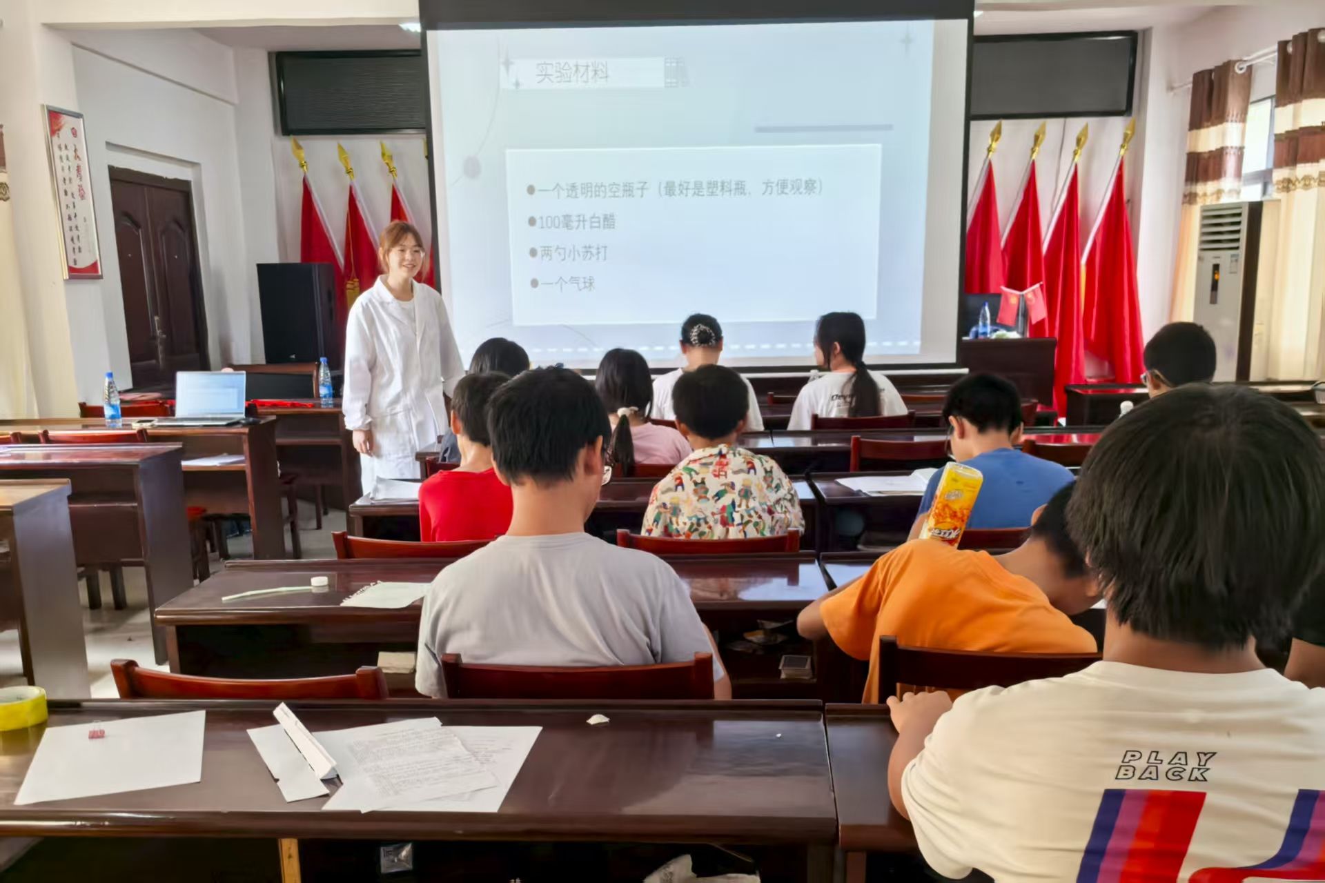 (通讯员 袁纯婉 段叶蕤)7月17日下午,邵韵传知”暑期实践队赴邵阳市新宁县水庙镇开展了一堂趣味化学实验课。实践队以常见生活物品为器材,带领20余名员工完成“空瓶吹气球”和“烟花绽放”实验,将基础化学知识与实践操作融合。