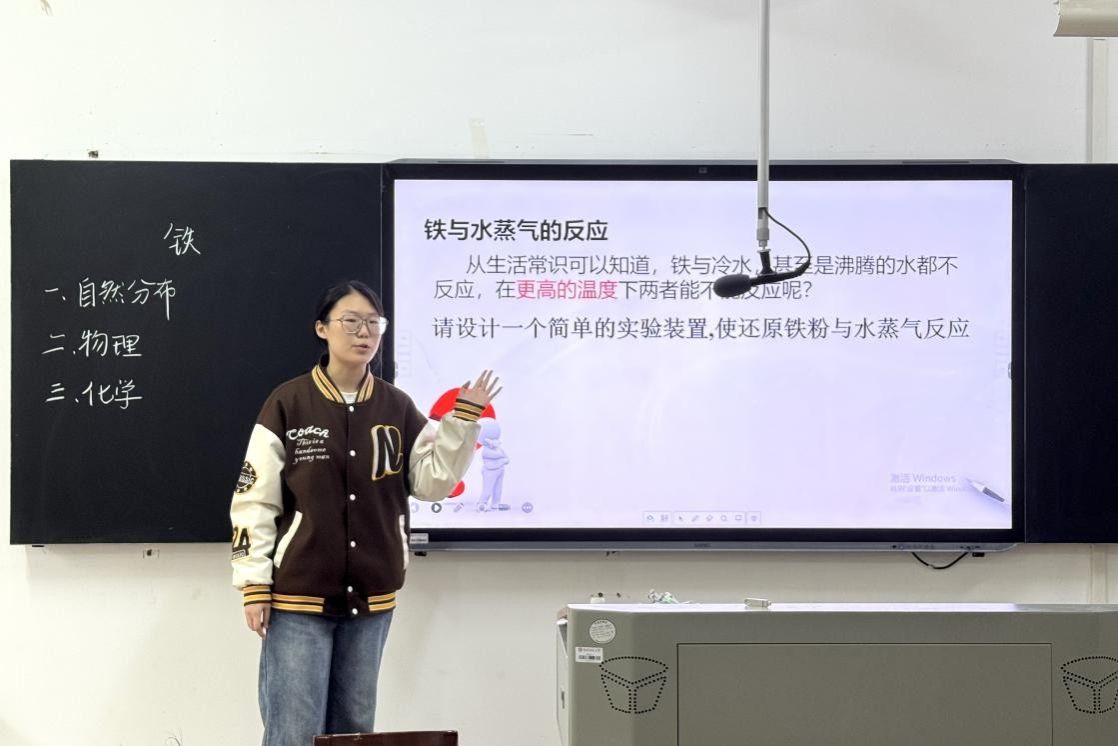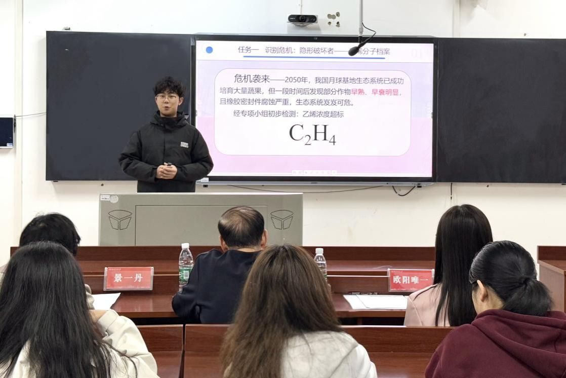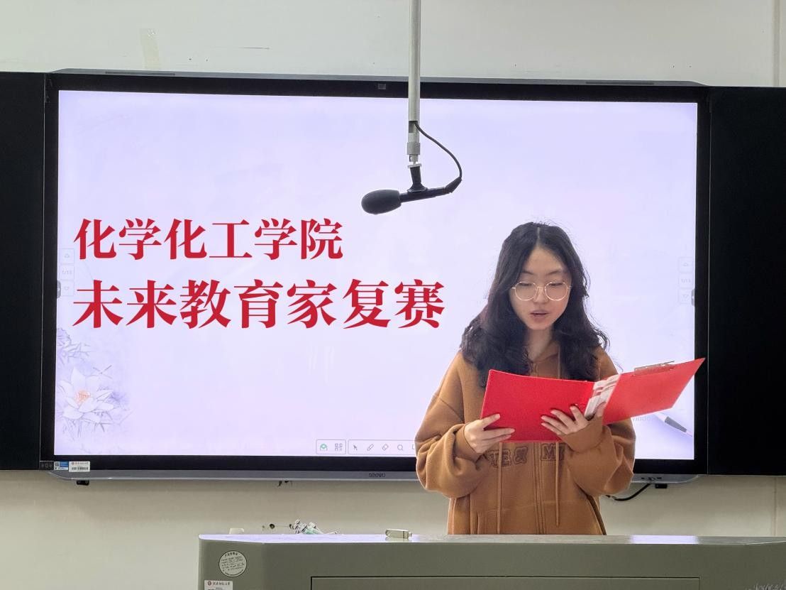 复赛采取8分钟微型课教学的形式,评委从教学内容及方法、语言表达、教态及板书、多媒体课件使用效果等方面多维度对选手进行综合考评。其间,选手们围绕化学核心知识展开教学,板书和课件相辅相成,教学仪态大方得体。比赛接近尾声,评委秉持客观公正的选拔原则,评选出10名选手参加“未来教育家”校赛。