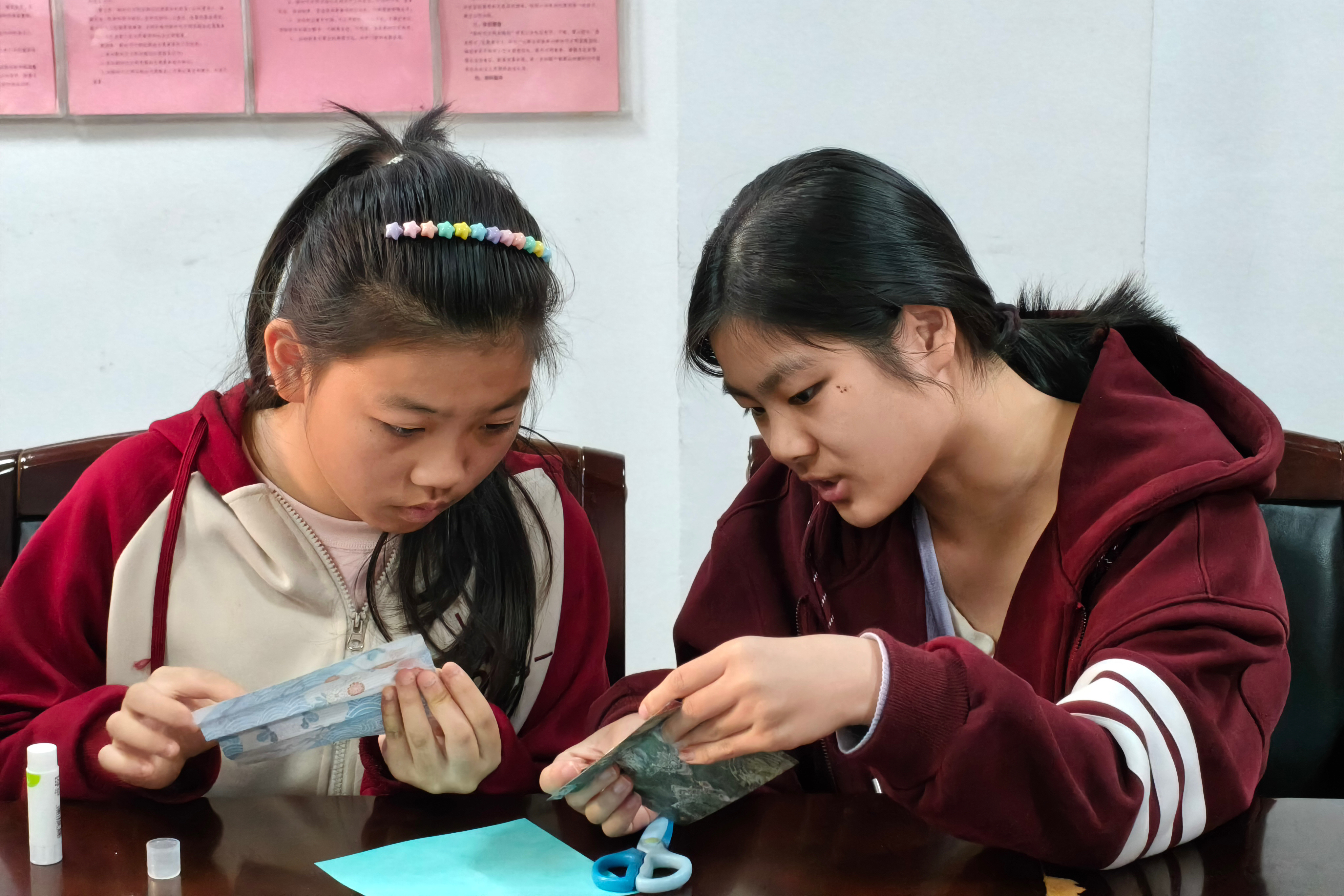 志愿者教小朋友折纸