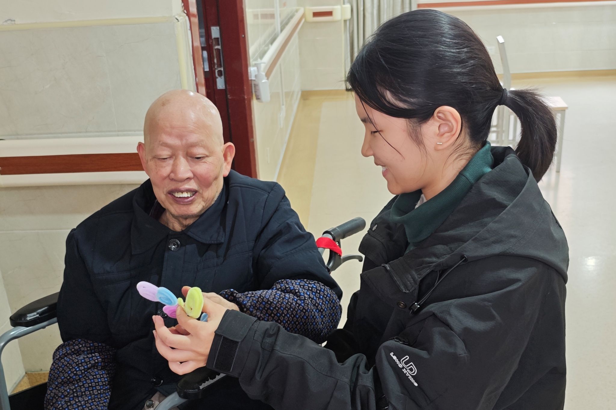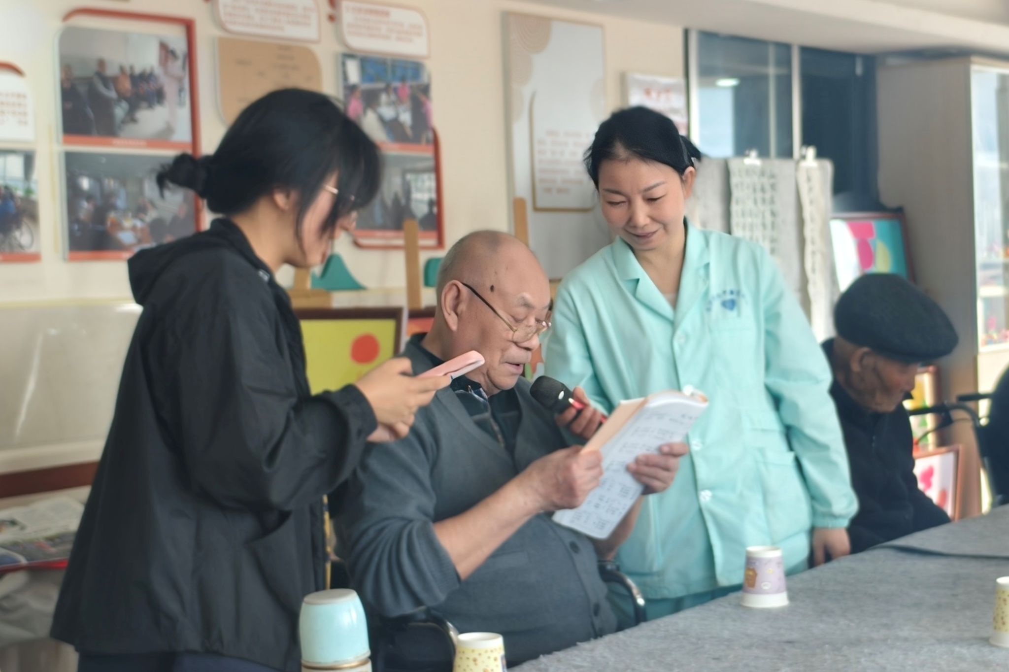 志愿者协助老人做手工