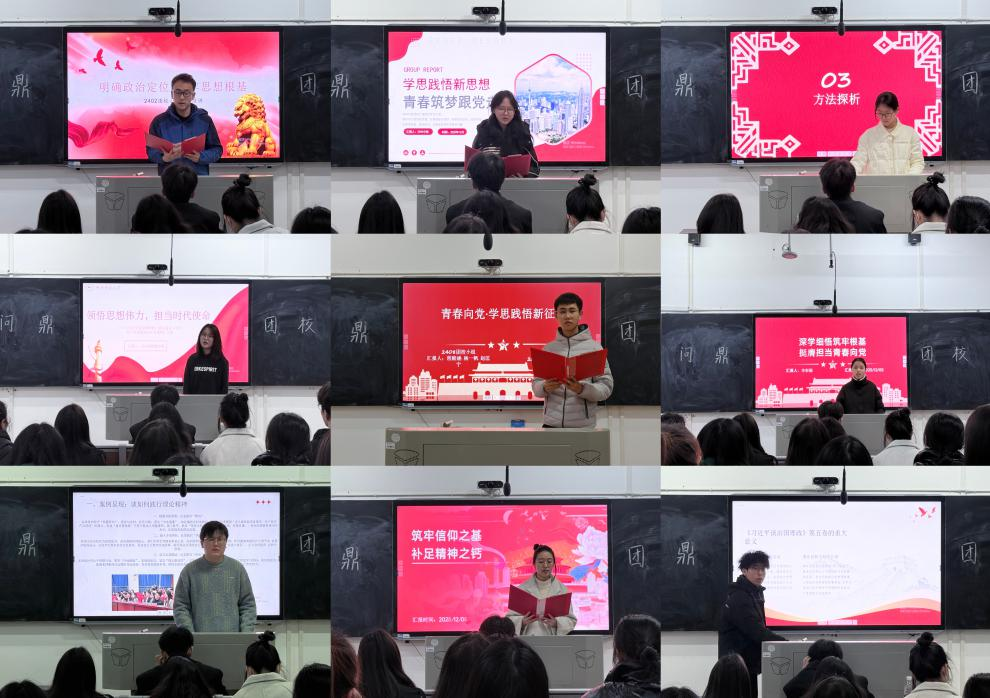 会上,2024级各团校小组围绕“奋进强国新征程,青春笃行显担当”的主题,结合《习近平关谈治国理政》第五卷和《中国共产党思想政治工作条例》的学习体会,依次汇报讨论成果,从理论领悟到实践路径递进,分享了对“两个确立”决定性意义的深刻认知,也结合“科创实践”等案例谈了青年担当的具体方向,展现出新时代青年的思想深度与行动自觉。