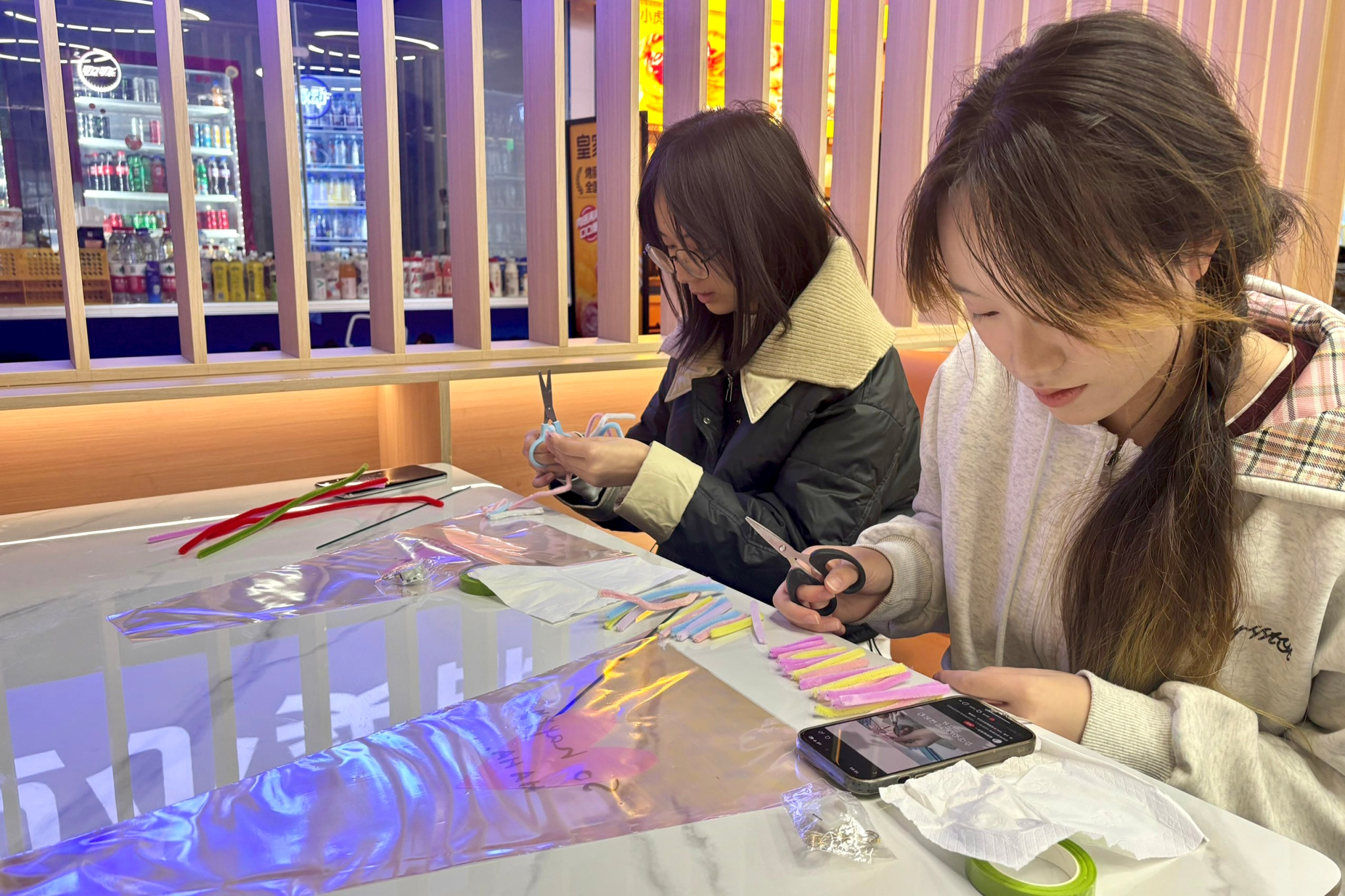 社团会员制作扭扭棒手工烟花