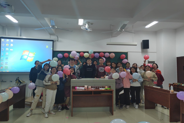 活动之前,女生委员谢银梅组织全体女生用气球,彩带等饰品精心装扮了活动教室。团支书刘玉姣担任此次活动主持人并策划了许多游戏环节,如:你划我猜,猜歌名,我有你没有等。在数字炸弹惊喜环节中,男生们喝下女生为他们特制的饮料,并且收到一份特别的节日礼物与祝福。活动尾声,全班同学一起拍照留念并将教室清扫干净。