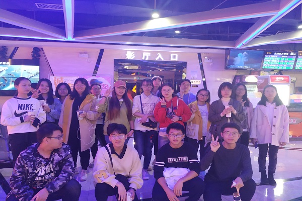 1808全体成员在亿鑫影院集合,拍照留念后,唐泽兰向各寝室分发提前采购好的零食。此次选择观看的电影不仅好评如潮且较具有社会意义,同学们也被电影情节所触动,部分同学还留下了泪水。