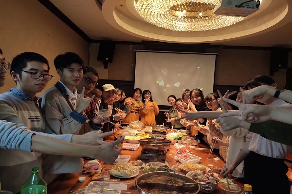 何君明组织同学准备自制火锅,同学们各司其职,有的负责食材清洗,有的负责食材加工,有的负责准备火锅底料,聚餐过程其乐融融,增强了同学之间的团队精神。别墅内部还有电影院、KTV、桌上足球等娱乐设施,同学们都玩得很开心,别墅内充满着欢声笑语,热闹非凡。